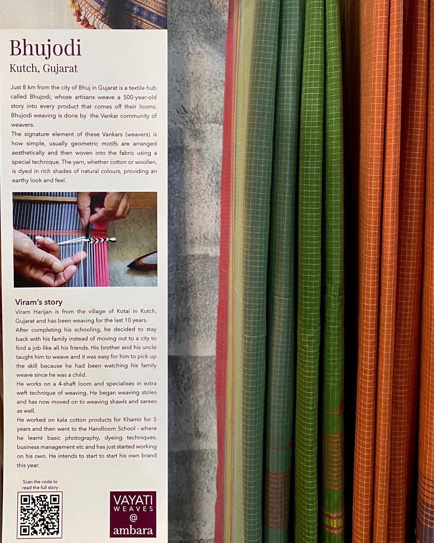 æšæ¥ãã仿æ«ãŸã§éå¬ãããŠããVAYATI WEAVESã®ããã¹ã¿ã€ã«å±ç€ºäŒãéå¬ãããŠããããšããïŒå¹Žæ¥ã®å人ããŽã£ã«ãéããŠç¥ã£ãã®ã§ãåæ¥ã®æšæ¥ã蚪ããã®ã ã£ãã