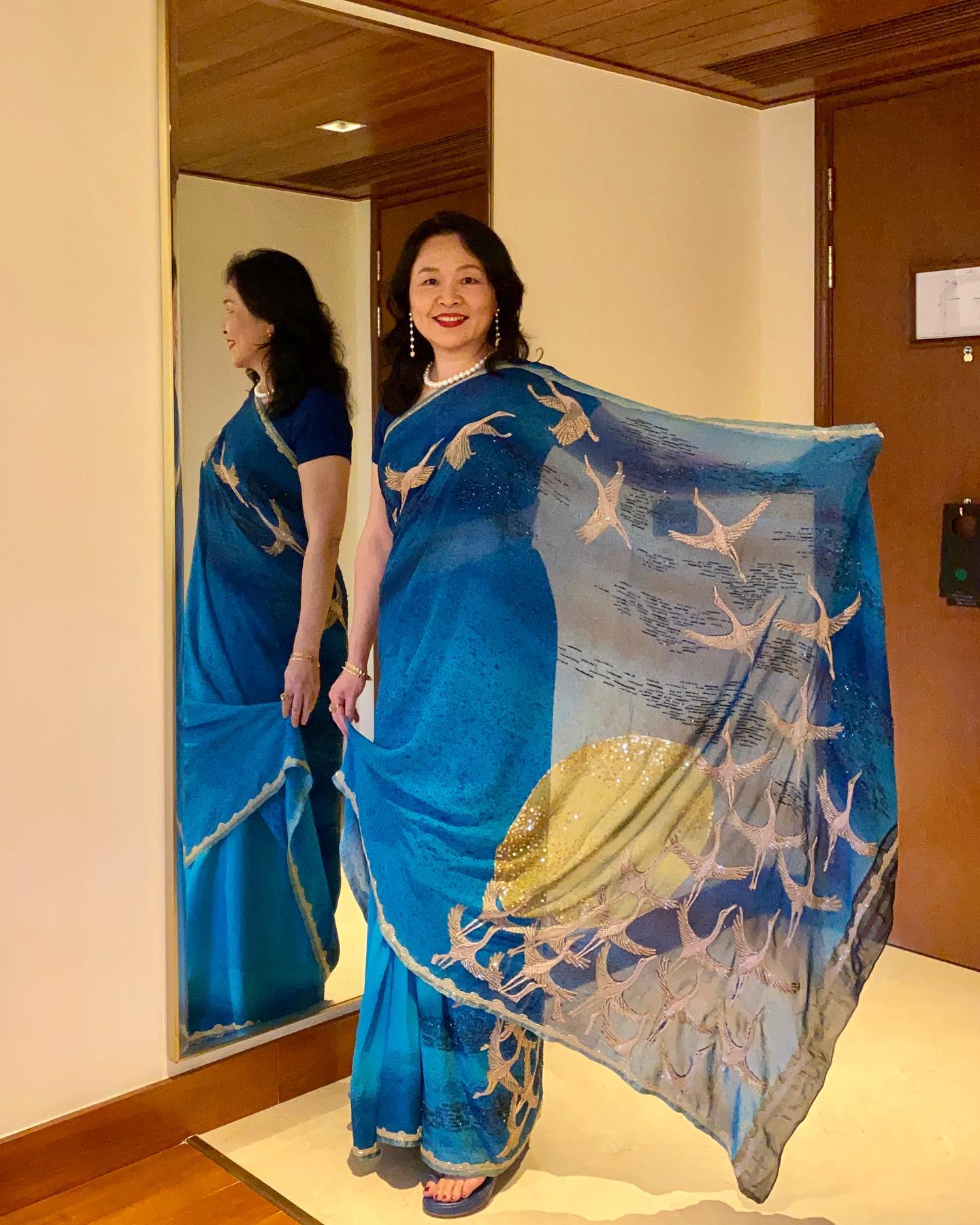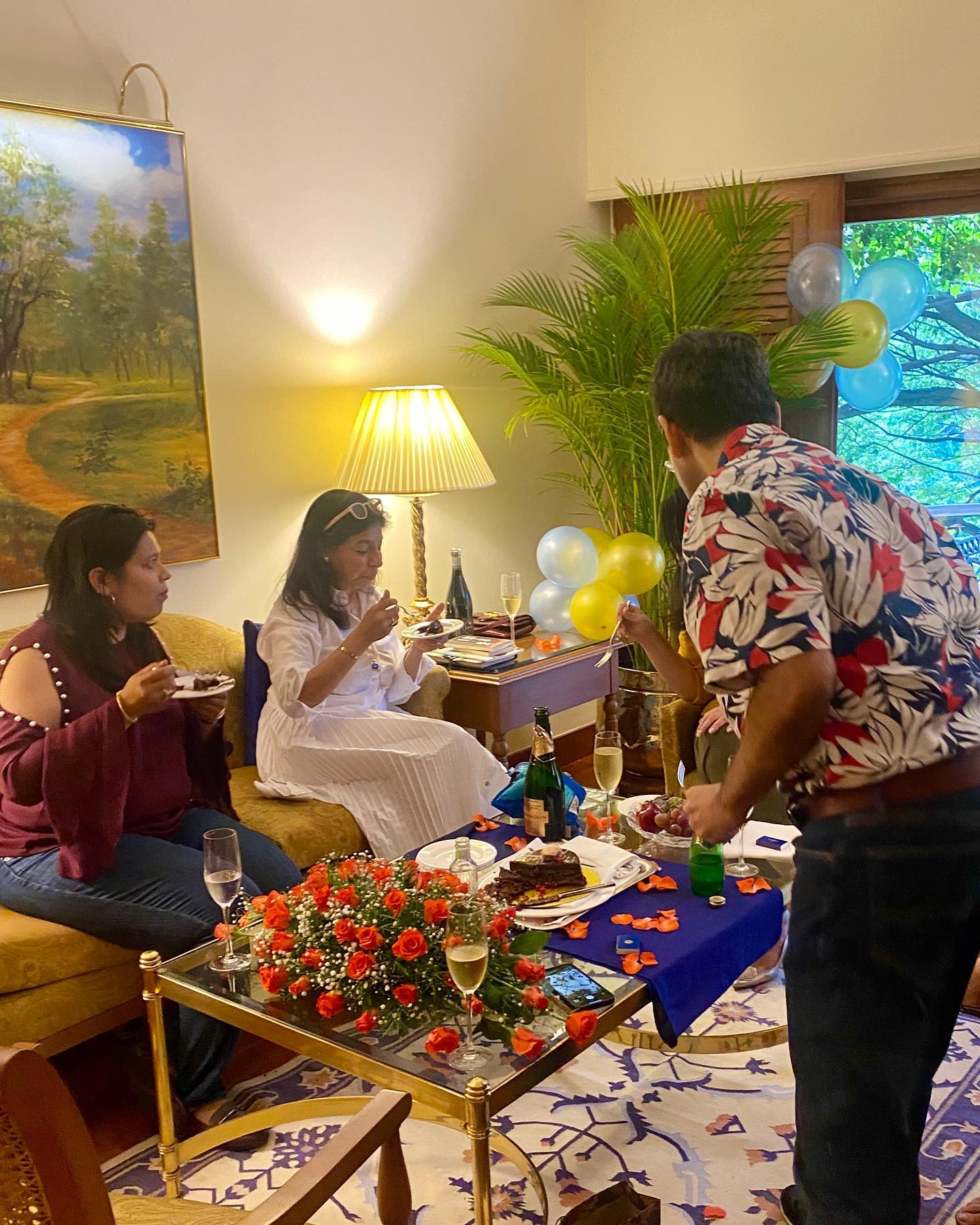 The hotel decorated our room for my birthday. I changed into my favourite saree to take photos. I bought it in 2008 at when we were living in Mumbai.