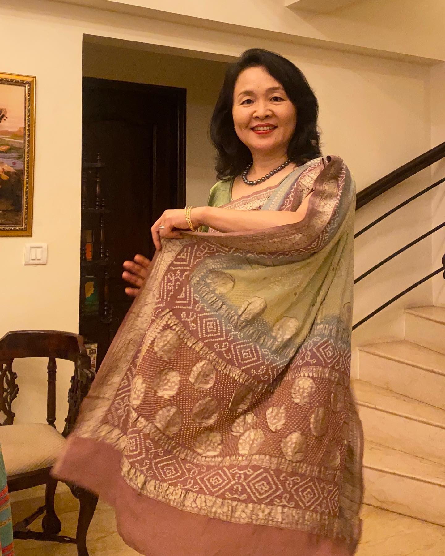 ゆえに、『インドのテキスタイルとサリー講座』を実施し、折に触れてミューズ・クリエイションのメンバーとサリーを着てランチ会をするときなど、限られたときだけの衣類となっていた。