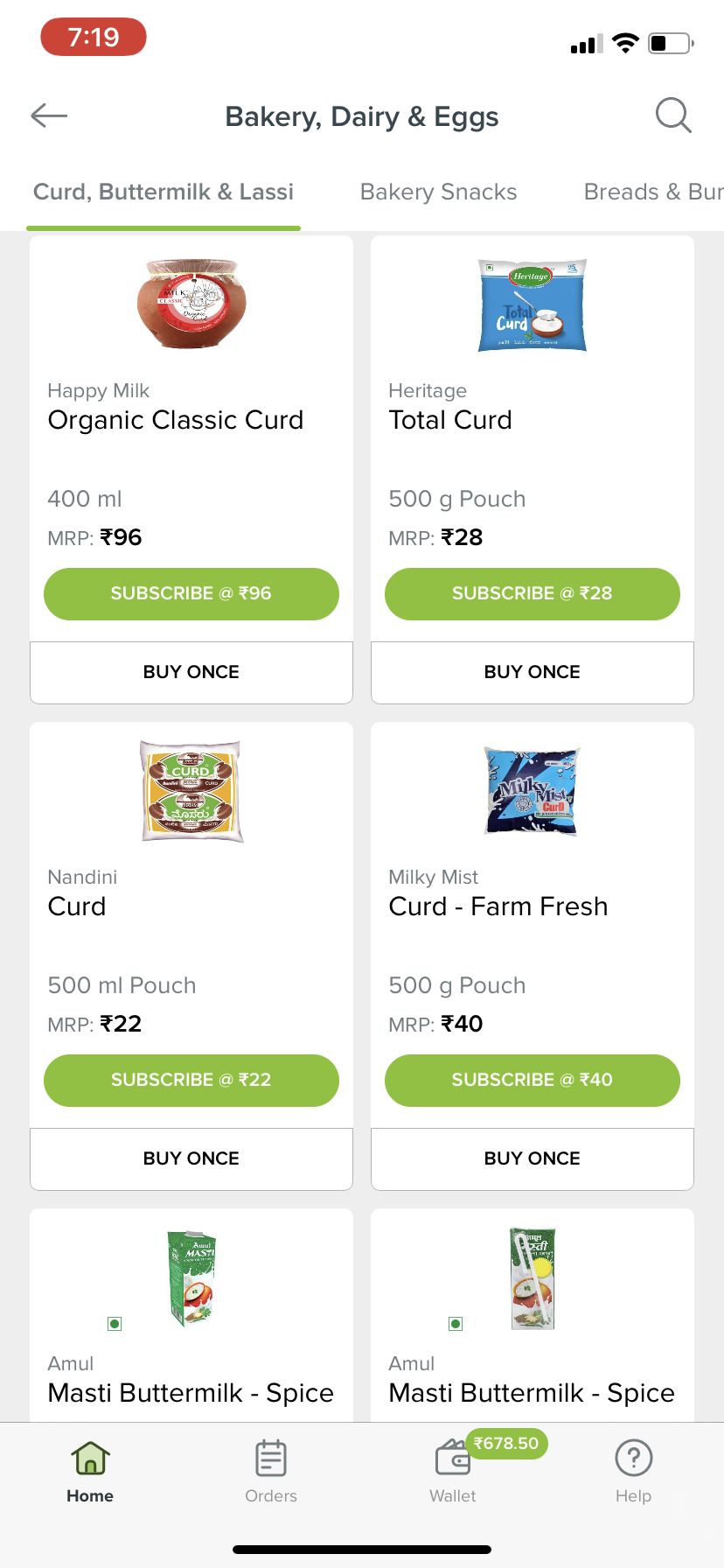 ããµã©ãã£ã€ãããããä»äžããã³ãã¯ãã¹ãã€ã¹ã®ãã©ã³ã¹ãããããšãªããããçä¹³ã®ã¯ãªãªãã£ãã«ããã以åã¯è¿æã®ååºã§è³Œå ¥ããŠããããæšå¹Žããã¯ããªã³ã©ã€ã³ã»ã¹ãŒããŒããŒã±ããã®BigBasket.comããæ¯æã決ãŸã£ãååãå® é ããŠãããBBDailyãšããã¢ããªã«ãããµãŒãŽã£ã¹ãå©çšããŠããã