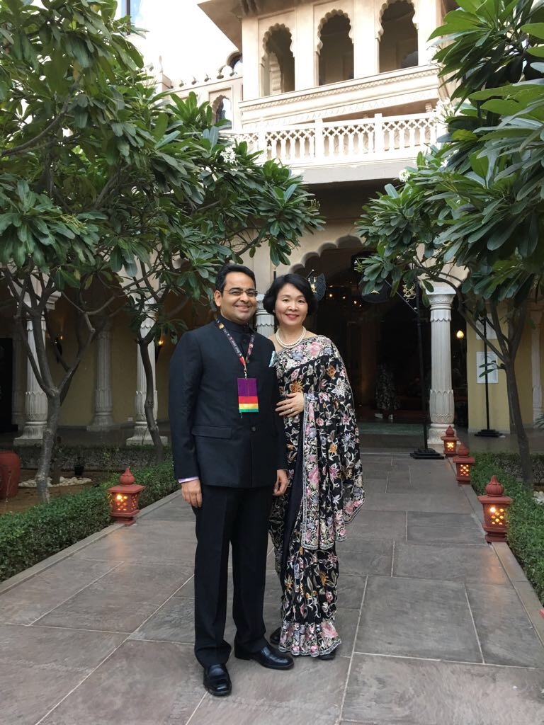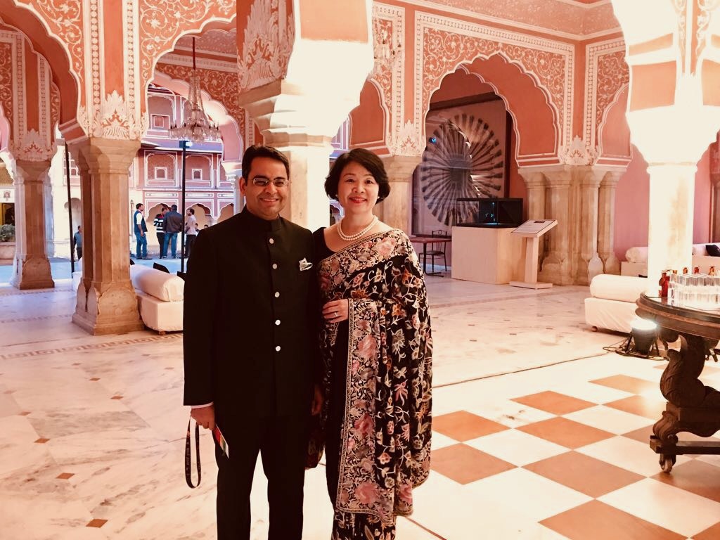🥻「結婚=初のサリー着用」20周年を迎え、現在「インド衣文化ブログ」も再構築中。懐かしい写真が無尽蔵。4年前ジャイプール・パレスでの晩餐会にて、マハラニ・パドミニと同席でお食事をした際の写真。私はパールシー(ゾロアスター教徒)の伝統的な刺繍のサリーを着用。今後、少しずつ紐解き紹介したい。