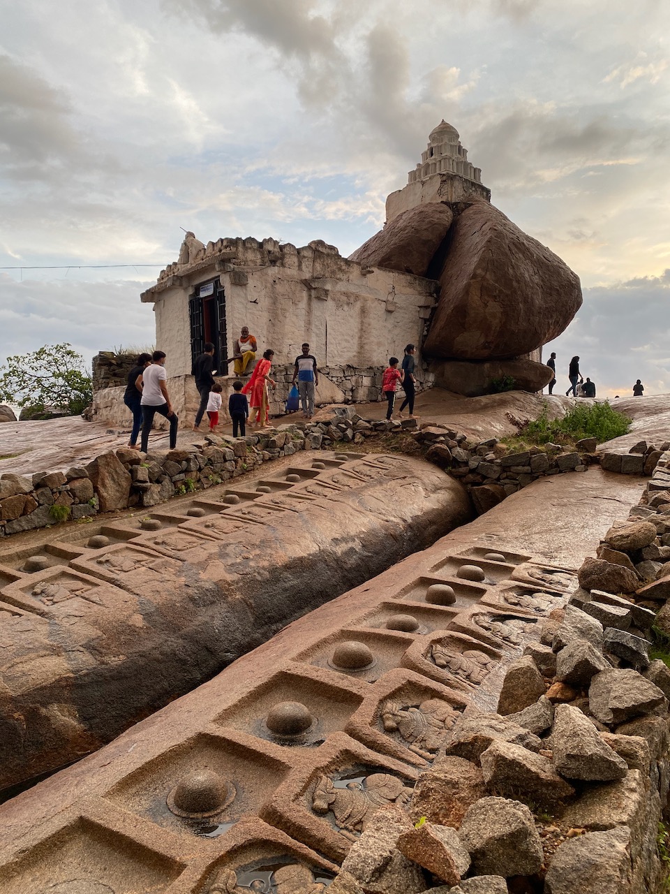 ハンピ一帯の「岩盤」や「奇岩」は、地球上で最も古い露出面のひとつ。地球が誕生した時、とてつもなく巨大な花崗岩の山だった一帯が、数千万年(数十億年という説もある)に亘って、日射しや嵐、風、雨といった自然の力に浸食で、徐々に形を変えた。石が積み重なったのではなく、自然という「彫刻家」によって造形された奇岩なのだ。