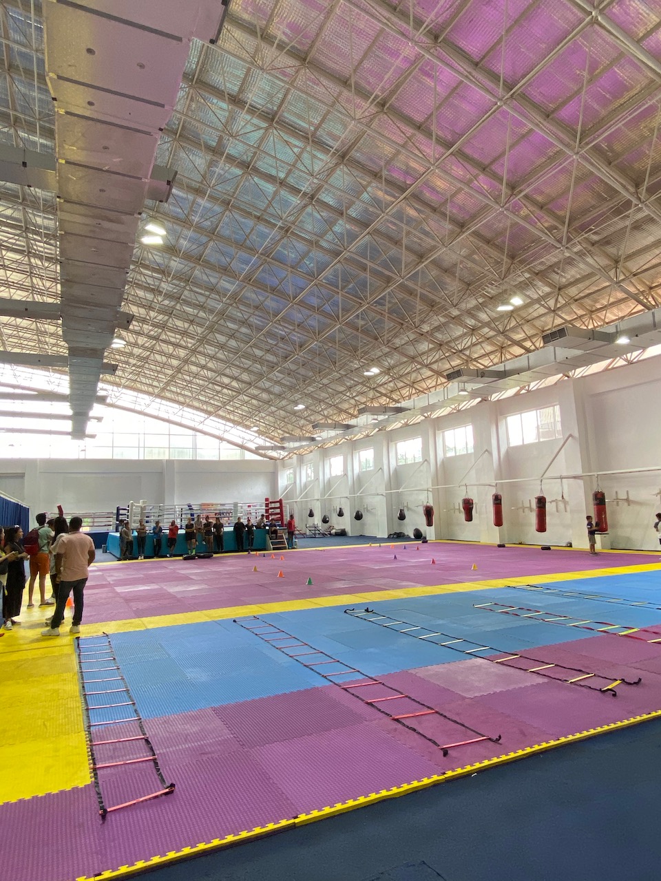 大規模なジムに圧倒される。ここでレスリングやボクシングなどのトレーニングが行われる。先進諸国のスポーツ施設に引けを取らない環境だとRushdeeは語る。
