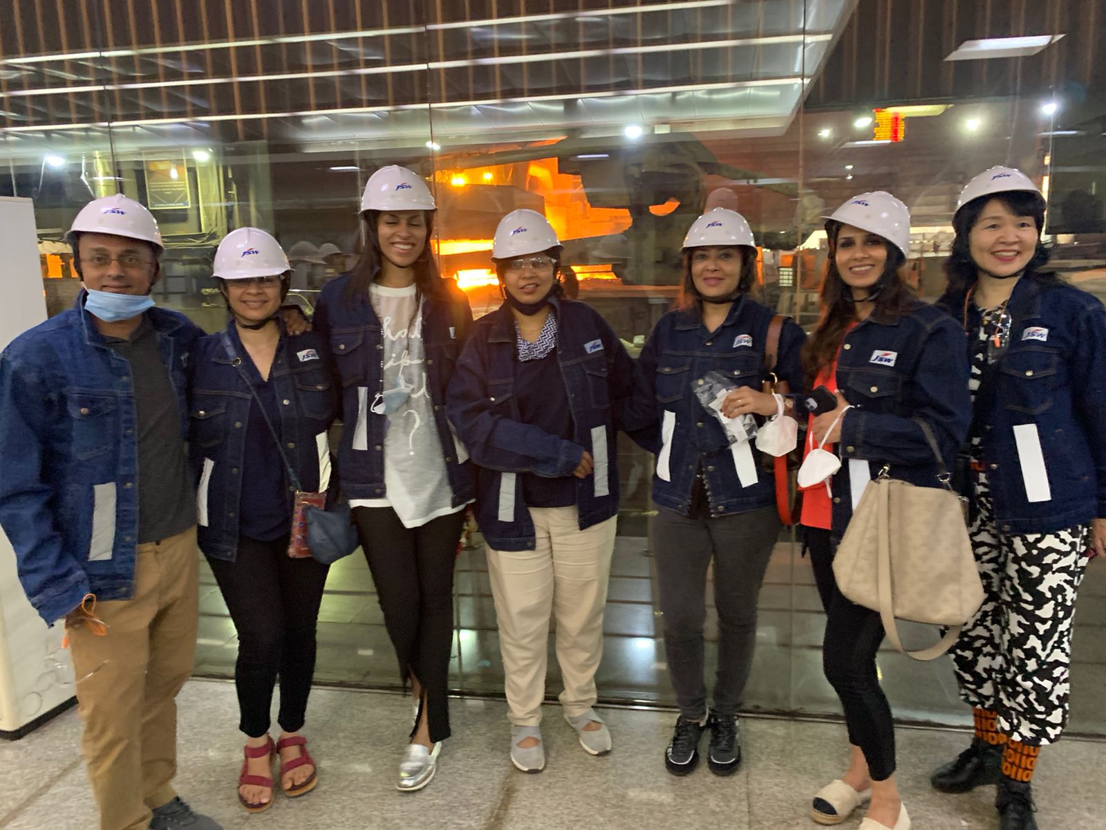 次いで訪れたのは、JSWスチールの製鉄所。わたしは、子どものころから「社会科見学」が好きだったこともあり、無駄に血が騒ぐ。まずはミーティングルームで同社に関するプレゼンテーションを視聴。JSWスチールは、1994年に設立され、1999年に粗鋼生産開始した新しい製鉄会社。現在は日本を含む世界140カ国に輸出、わずか20年あまりでインド有数の鉄鋼メーカーへと発展している。