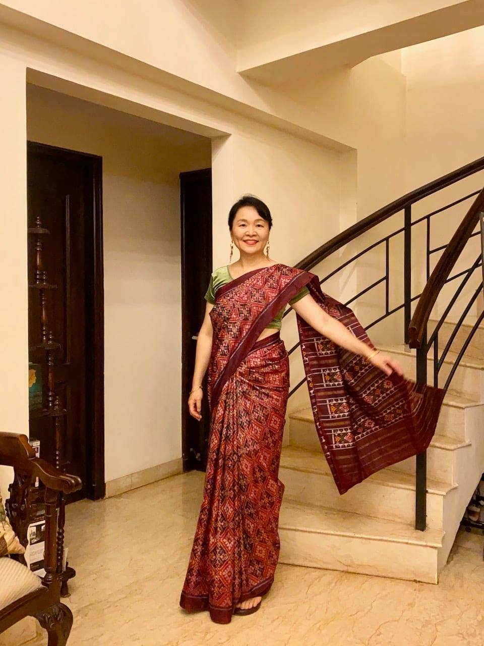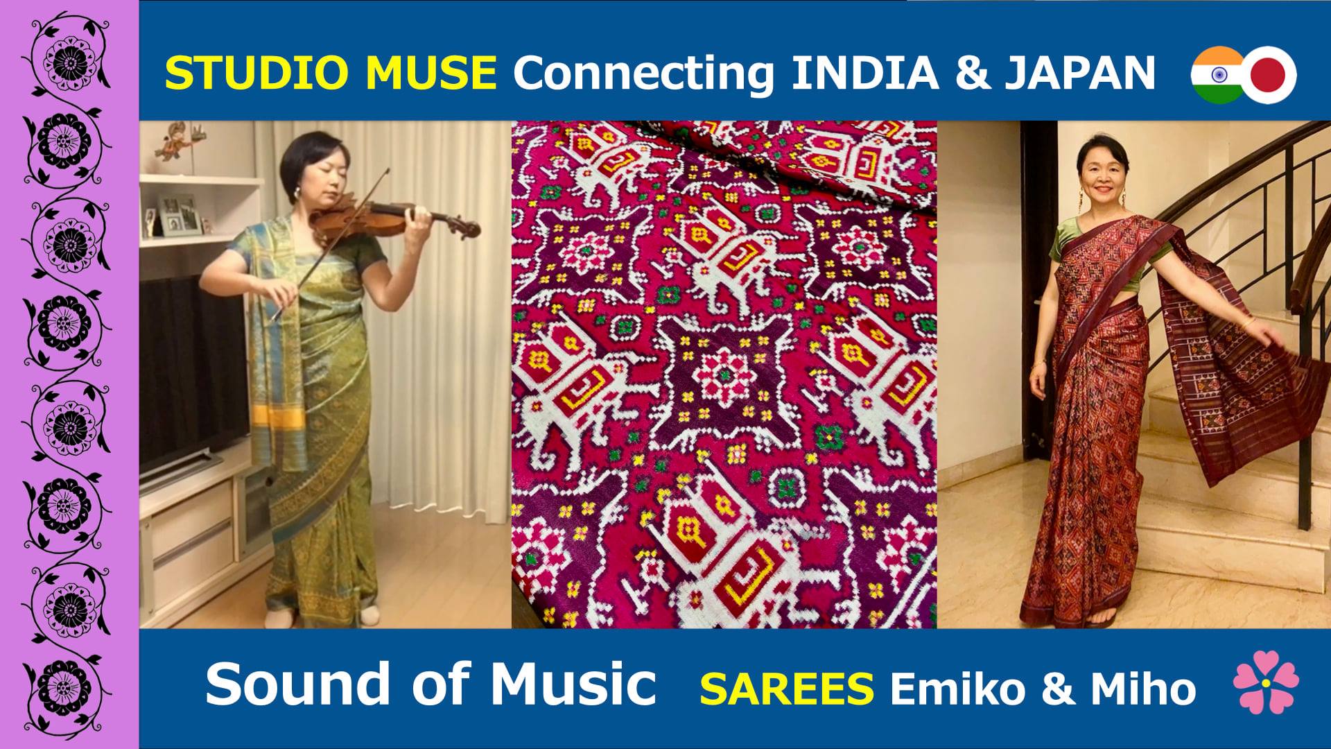 11曲目の今回は、W恵美子に加えてW美穂が登場。更には二人とも「究極の絣(かすり)」として知られるダブル・イカット(経緯絣/たてよこがすり)のパトラ織サリーを着用で、何かと厚みある作品になった。