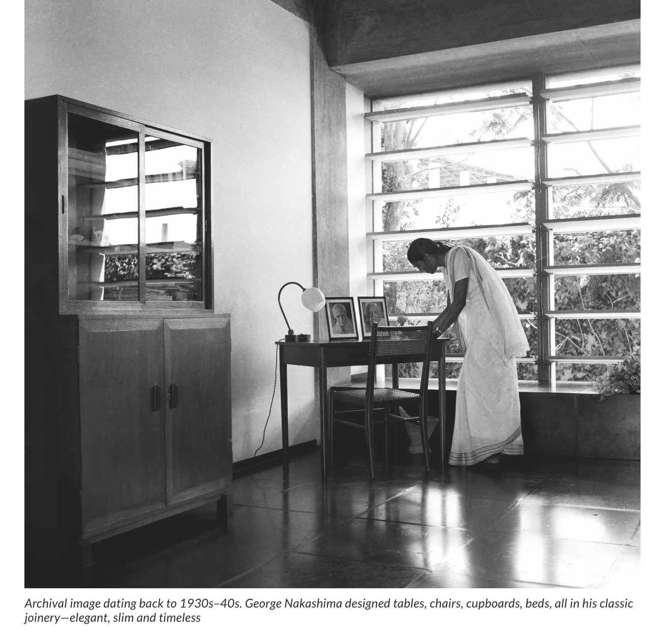 Nakashima was instrumental in designing a lot of the furniture for the design school I studied in NID*. All of us who studied there have had the good fortune to sit on his chairs while working or watching films in the auditorium. I love his simplicity in design. But the most emotive and effective experience of Nakashimaâs style can be had at the ashram in Pondicherry. Itâs got very strict rules though so you need to be thoroughly prepared to take up a short residence there. Itâs meditative.