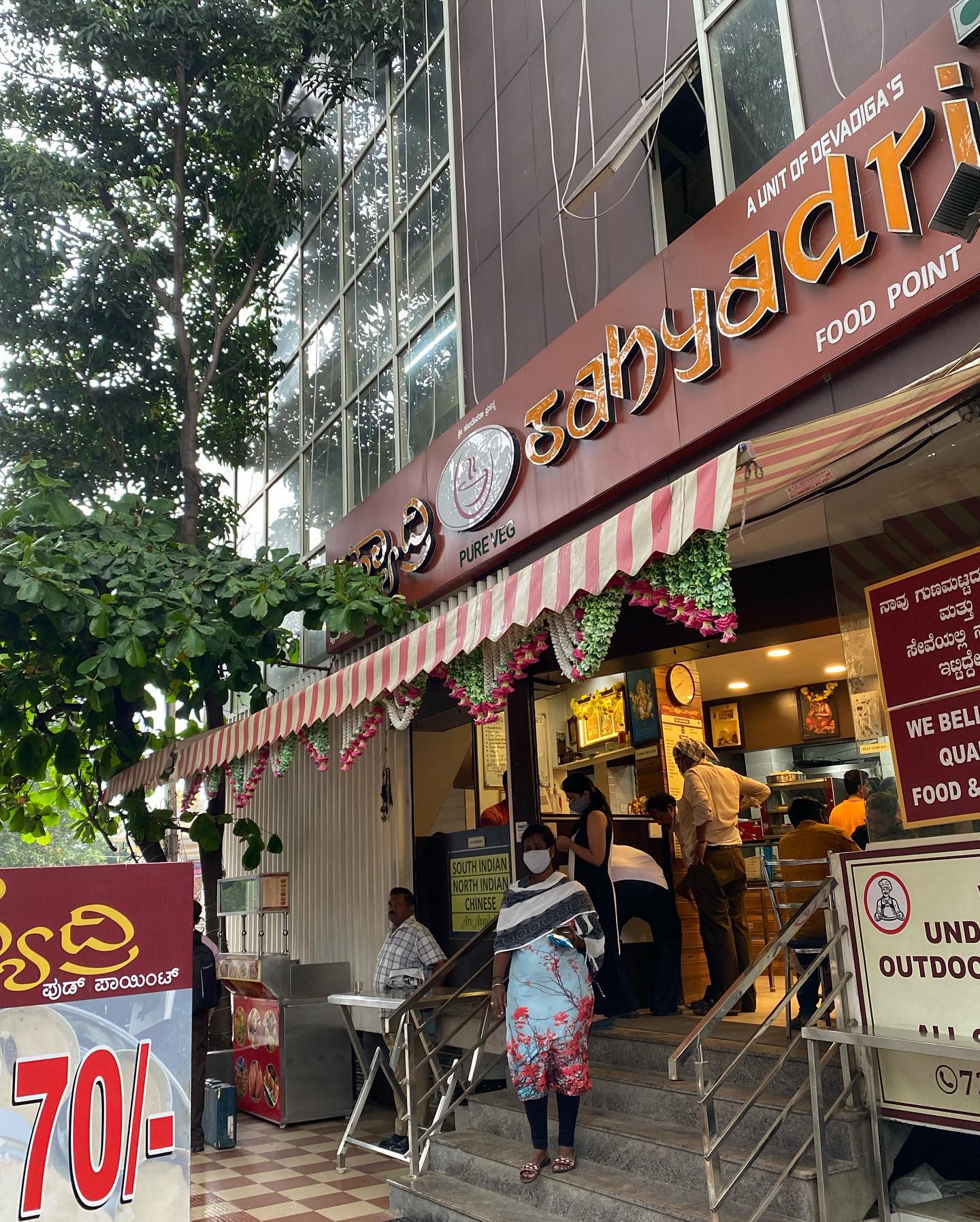 Google Mapのおかげで、界隈の「高評䟡」の店をすぐに探し出せる。倧通りを倖れ、昔ながらのコテコテな映画通の暪を通り過ぎ、蟌み入った街路を通過しお、たどり぀いたその店。おすすめのバタヌ・マサラ・ドヌサにはじたり、ワダを皮類、そしおサりスむンディアン・コヌヒヌを泚文←食べ過ぎ。