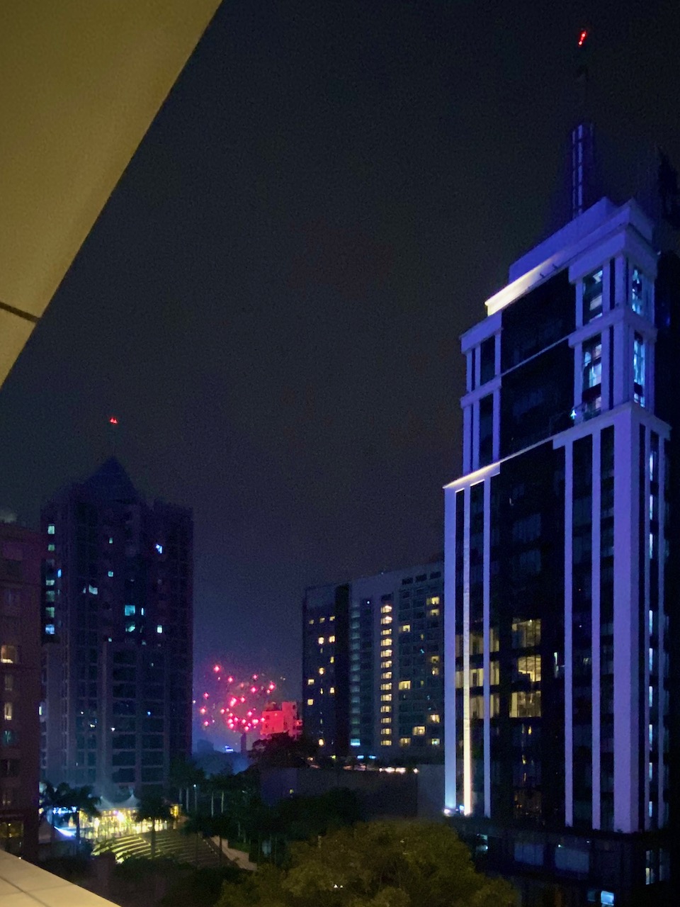 「誕生日のお祝いに、僕たち、花火を打ち上げてくるよ!」……と言って、外へ出た。最後の動画、彼らが打ち上げた花火である。カフェ・コーヒーデー本社の前庭で打ち上げた花火を、キングフィッシャータワーから眺めているアングル。