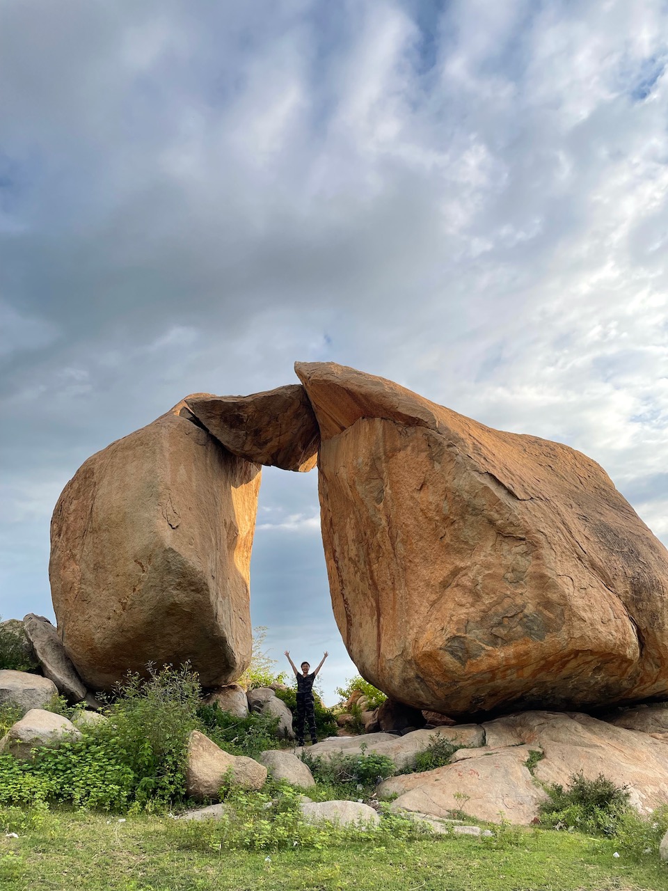 ハンピ一帯の「岩盤」や「奇岩」は、地球上で最も古い露出面のひとつ。地球が誕生した時、とてつもなく巨大な花崗岩の山だった一帯が、数千万年(数十億年という説もある)に亘って、日射しや嵐、風、雨といった自然の力に浸食で、徐々に形を変えた。石が積み重なったのではなく、自然という「彫刻家」によって造形された奇岩なのだ。