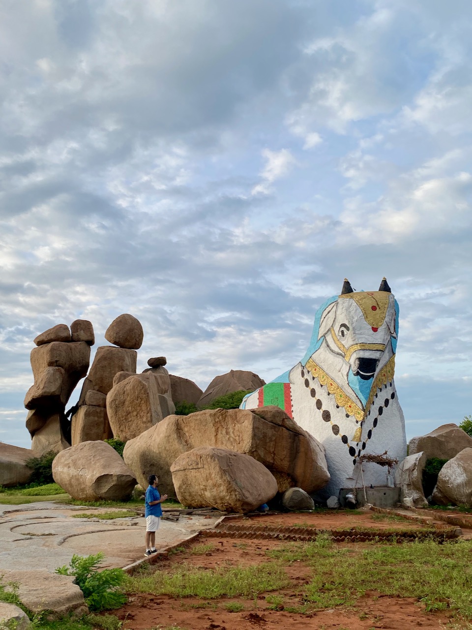 丘を上り詰めた先に、巨大な牛、シヴァの乗り物「ナンディー」が鎮座しているのが見えた。この姿を目にしただけで、心が逸(はや)る!