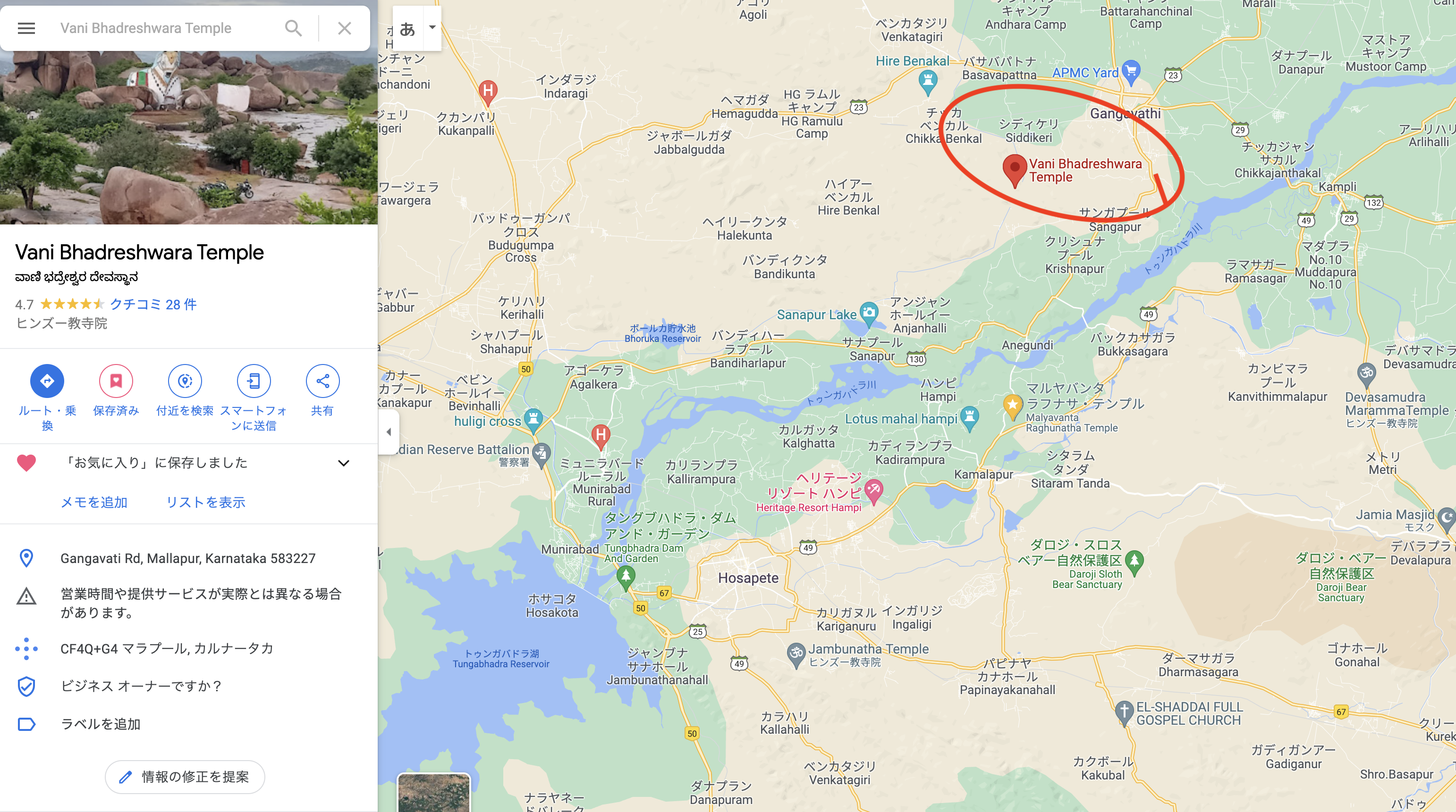 ジンダルの鉱山がある場所から、目的地「マラパー村 (Mallapur village)」を目指す。ハンピに詳しく、かつてはガイドブック『ロンリー・プラネット』の取材をコーディネートしたことがあるというドライヴァー氏さえ、その場所を知らない。こうなったらGoogleマップだけが頼りだ。観光地にもなっているダムを通過して、車を東へと走らせる。