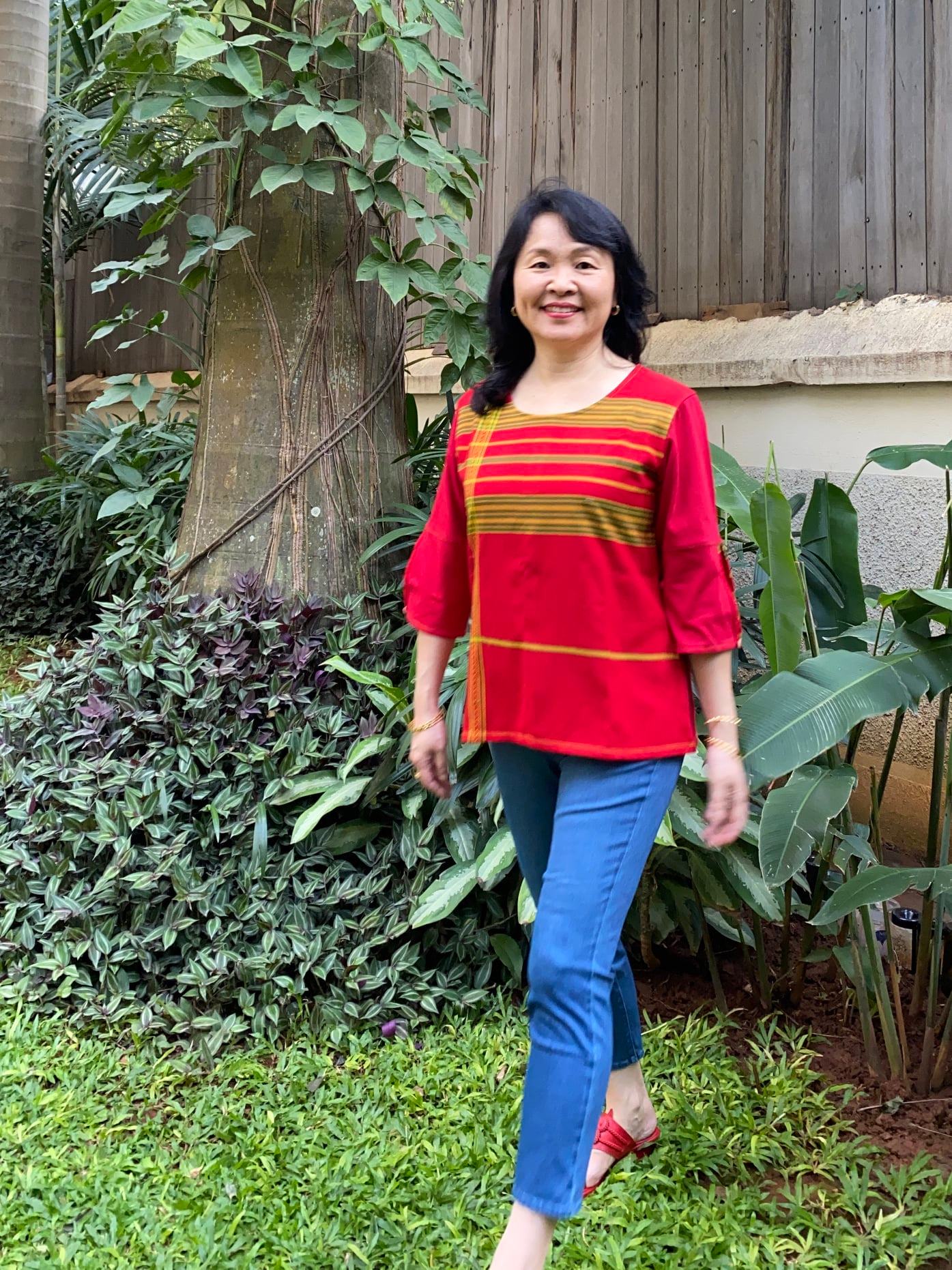 昔ながらのイカット(かすり)のテキスタイルと、木綿のジャージー素材のコラボで、極めて快適。
