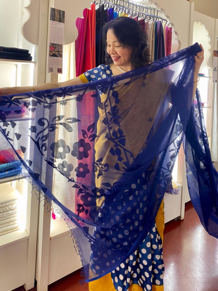 ところで、昨日着用のサリーは、先日、VAYATI WEAVESの展示会で購入したベンガル地方の伝統工芸モスリン(綿織物)。若き職人起業家による手織りものだ。今回初めて着用したが、軽く柔らかく、本当に着心地がいい。