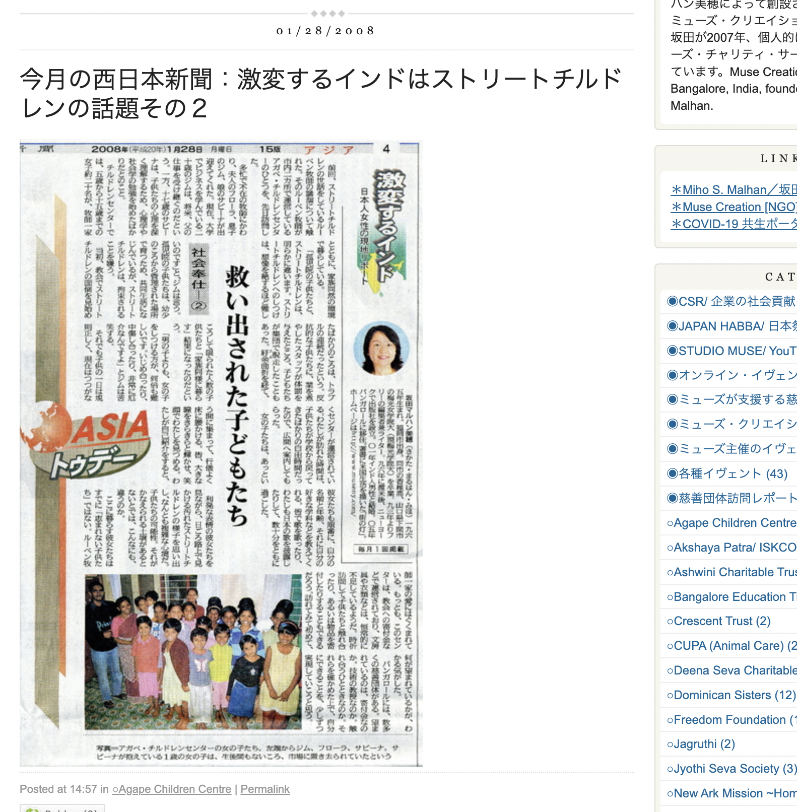 ◎2005年11月/坂田マルハン美穂は米国よりバンガロールに移住。思うところあり一人で社会貢献活動を開始。仕事の傍ら、不定期でチャリティティーパーティやセミナーを開き、寄付金を慈善団体に届け始める。