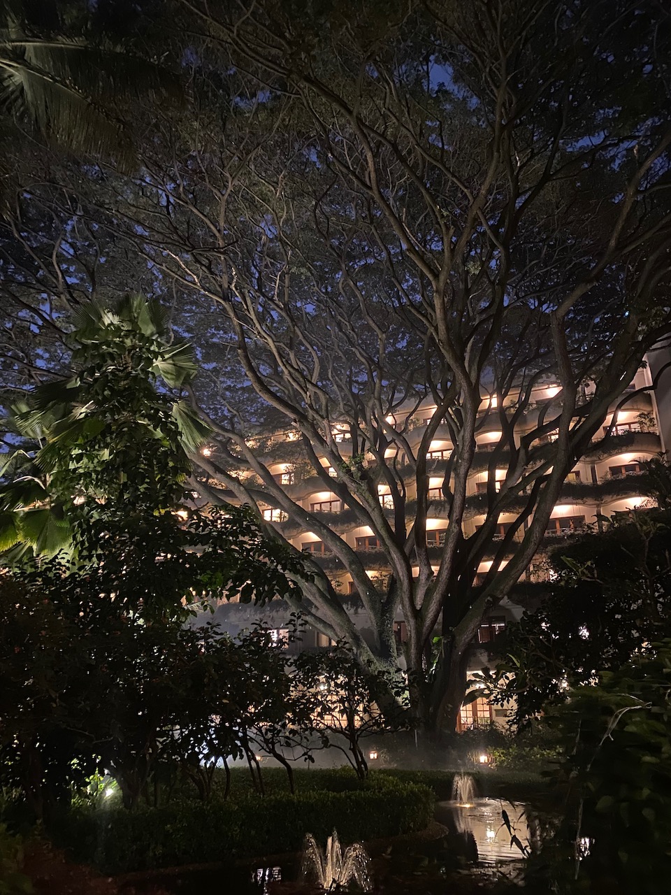 夕暮れどき、オベロイホテルでサウスインディアン・コーヒーの昔ながらの飲み方「デコクション」を注文。この濃厚コーヒーと濃厚ミルクをブレンドした1杯も楽しんでいただけた。☕️