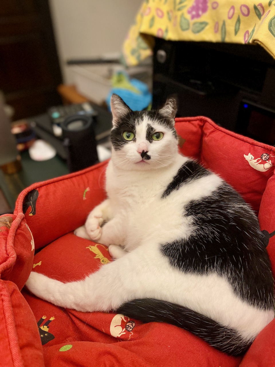 夫の膝で、夫と暖め合いながら、つぶらな瞳のROCKY兄さん。