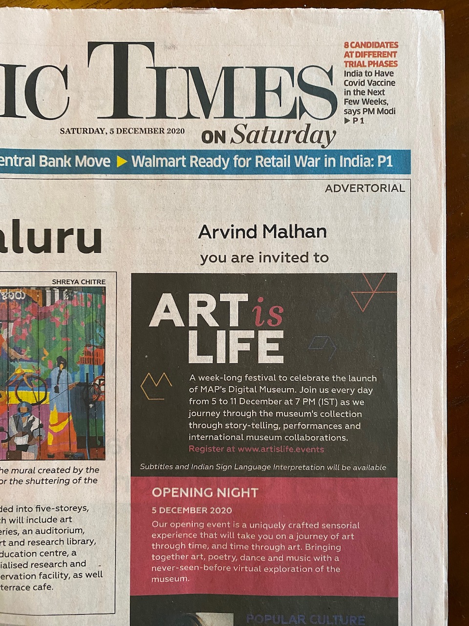 ãã³ãããã¯ã§ãã¥ãŒãžã¢ã ã®éæ¥ãé ããŠãããªããMAPã¯2020幎12æãããã€ã³ãåã®ããžã¿ã«çŸè¡é€šã皌åãããããç»é²ãããããŸã§ããã€ãã®ãªã³ã©ã€ã³ã»ã€ãŽã§ã³ããäœéšããŠãããMAPã¯ã€ã³ãã®è±ããªèžè¡çéºç£ãä¿è·ããå倧ãªãèžè¡åãæ¬¡äžä»£ã«ç¶æ¿ããããšãéèŠããŠãããå€ãã®è¥ãäžä»£ãããã¥ãŒãžã¢ã éå¶ã«é¢ãããæšæ¥ããã¥ãŒãžã¢ã 通å ã«ã¯è¥è ãã¡ãéæã§åãå§¿ãèŠãããæ°ããæ¯å¹ãæããããããã