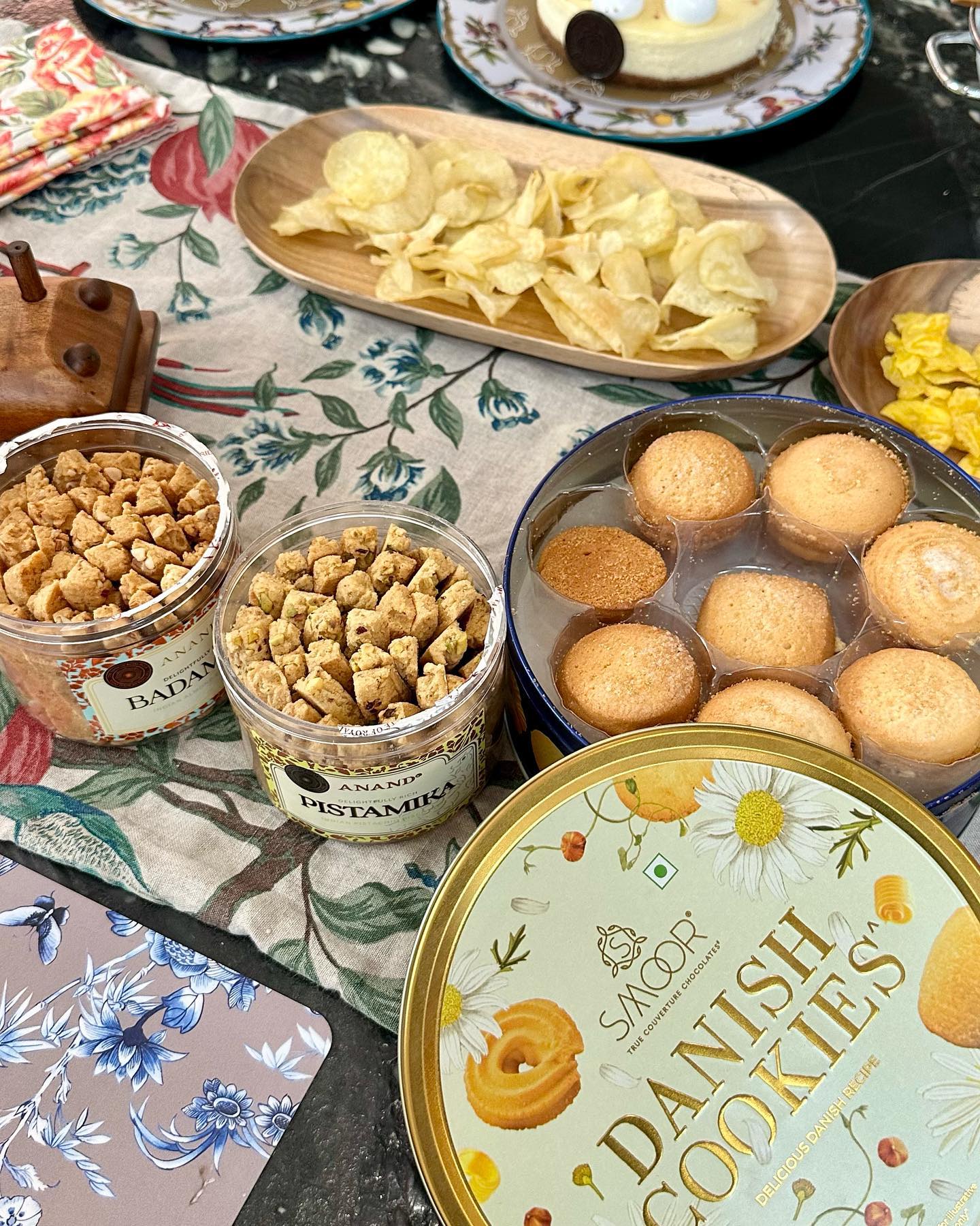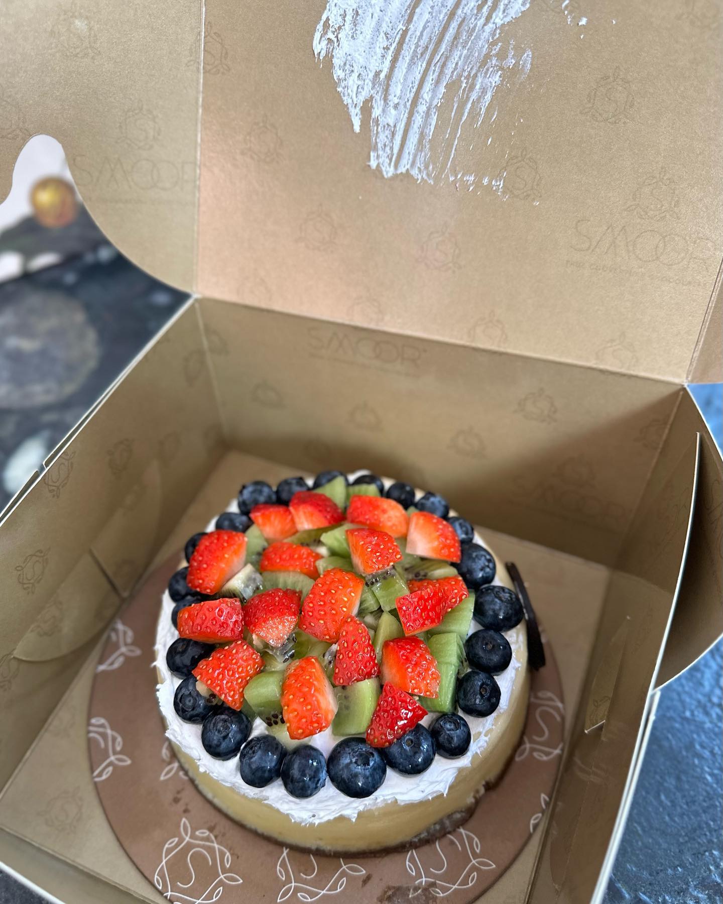 Even in this area of North Bangalore, you can order from some of the small, trendy shops there. Yesterday I ordered cheesecake, chocolate cake and cookies from SMOOR. The cheesecake always has crumbled cream on top, so I arrange it later with fruit toppings.