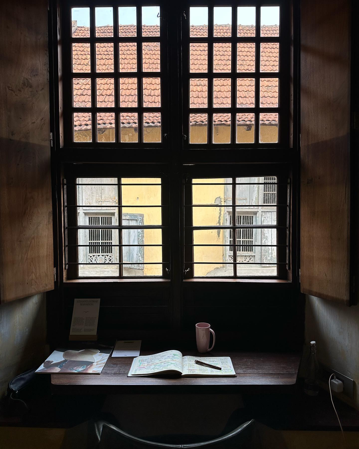 散策の合間にも、ホテルに戻ってシャワーを浴び、心地のよいベッドにゴロンと寝転び、窓の外を眺める至福。そして最高の、窓辺のデスク。今もこの小さなデスクで、朝日を浴びながら、文字を重ねている。