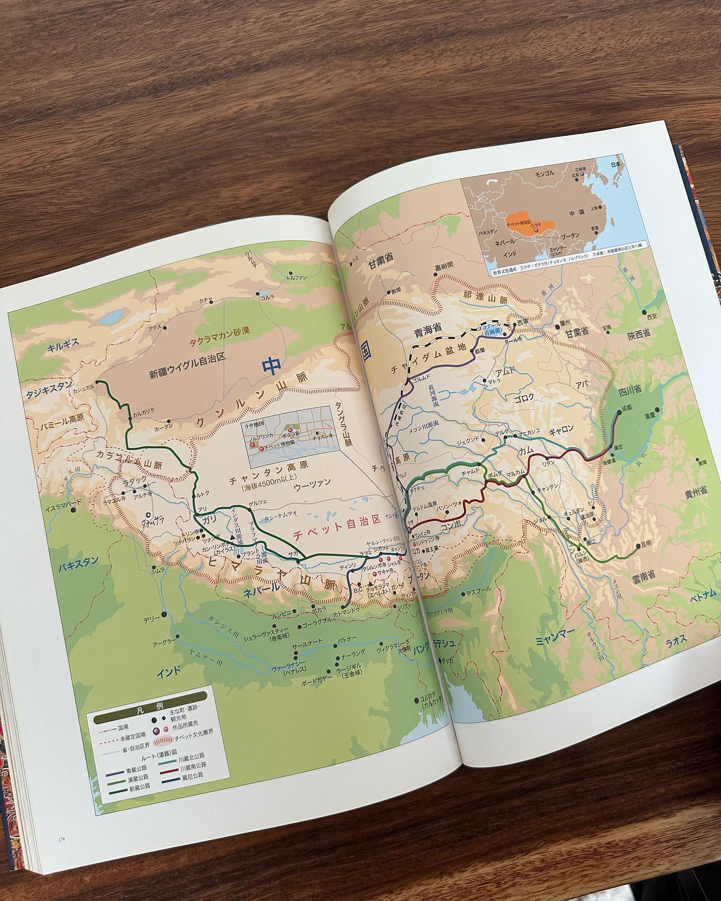 我が家にはチベット関連の書籍や絵画などが少なからずある。2009年に日本へ一時帰国した際、九州国立博物館で開催された「聖地チベット/ポタラ宮と天空の至宝」を訪れた。その時に購入した目録がすばらしい。巻末の地図を見れば、チベットが天然資源も豊かに、さまざまな川の水源を擁していることがわかる。軍事的な要衝地としても地理的に有利であるがゆえの、この国の悲劇を思う。