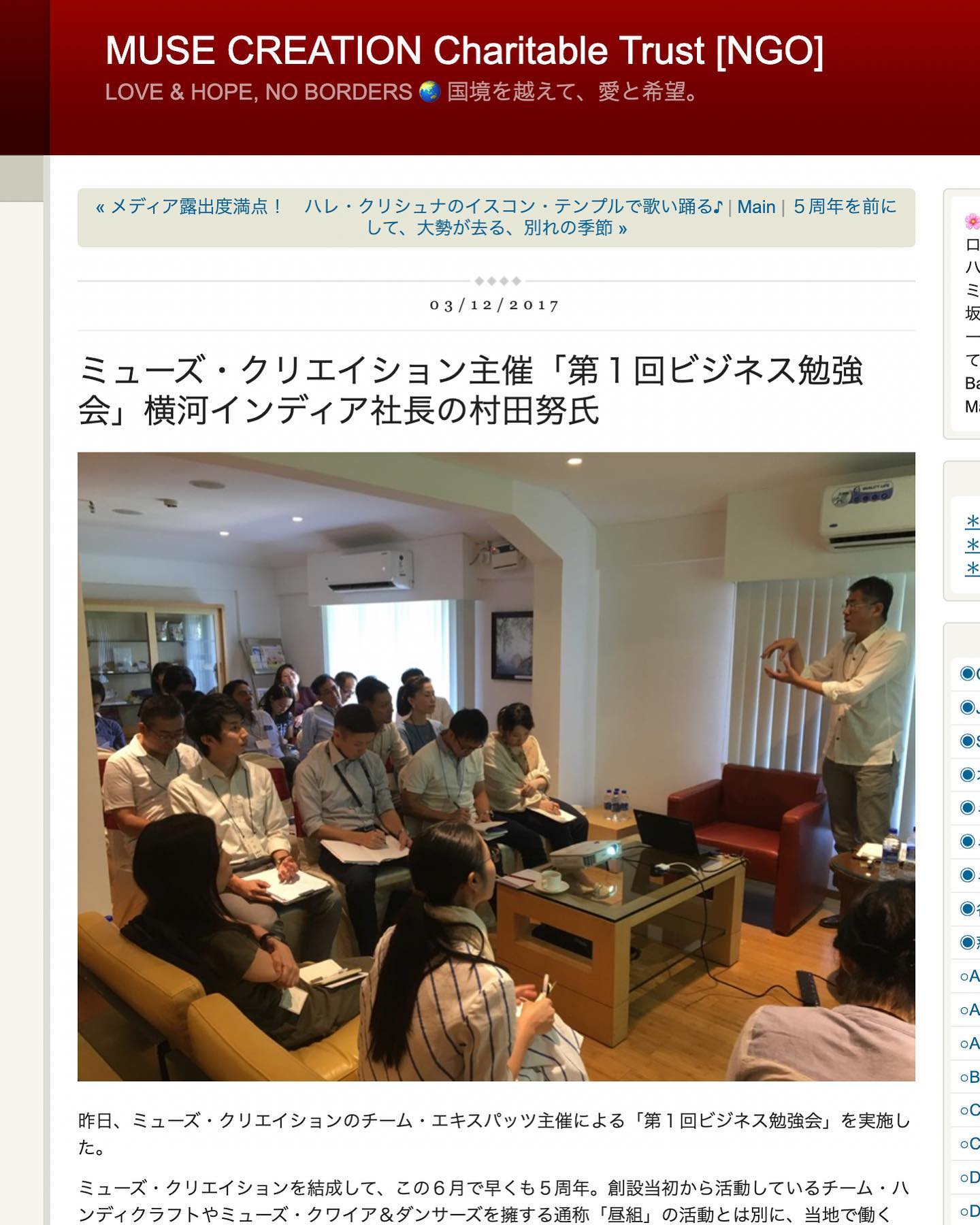 ◉ミューズ・クリエイション主催「第1回ビジネス勉強会」横河インディア社長の村田努氏