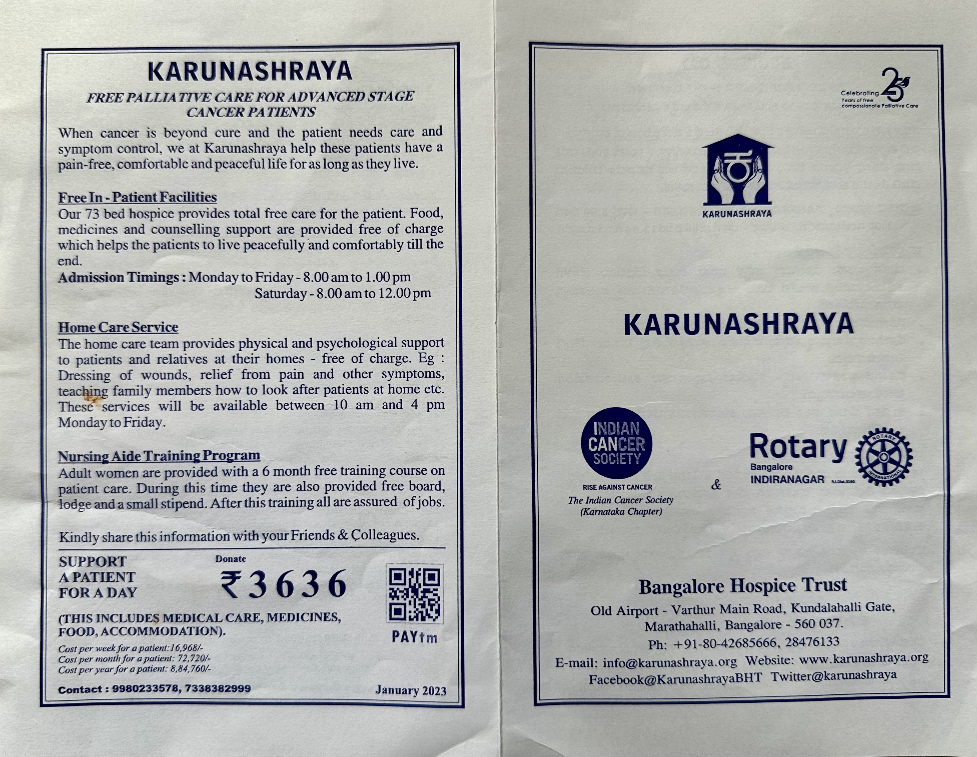 ⬆︎このホスピスはまた、国際的なホスピス協会からも、今年、以下のアワードを受賞したばかりであった。 The Bangalore Hospice Trust (Karunashraya) has been awarded the International Association for Hospice and Palliative Care’s (IAHPC) ‘Institutional Recognition Award 2023’ under the Low and Middle income category (LMIC).