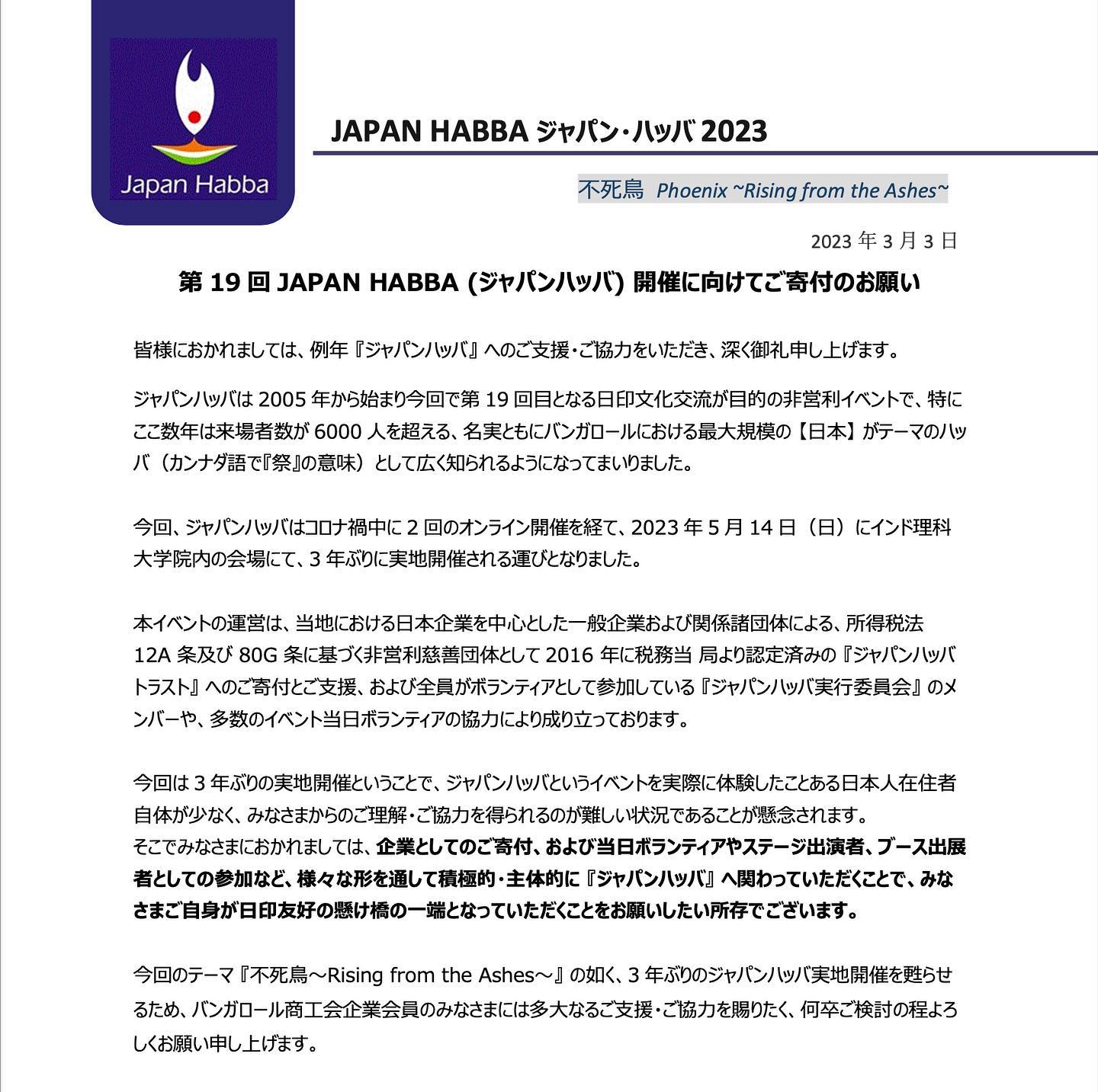 2005幎ãã¡ããã©ãããããã³ã¬ããŒã«ã«ç§»äœãã幎ãããåœå°ã§æ¯å¹Ž2æã«éå¬ãããŠããæ¥æ¬ç¥ãããžã£ãã³ã»ãããããããã (HABBA)ãšã¯ãå°å ã«ã³ããèªã§ãç¥ãããæå³ããã