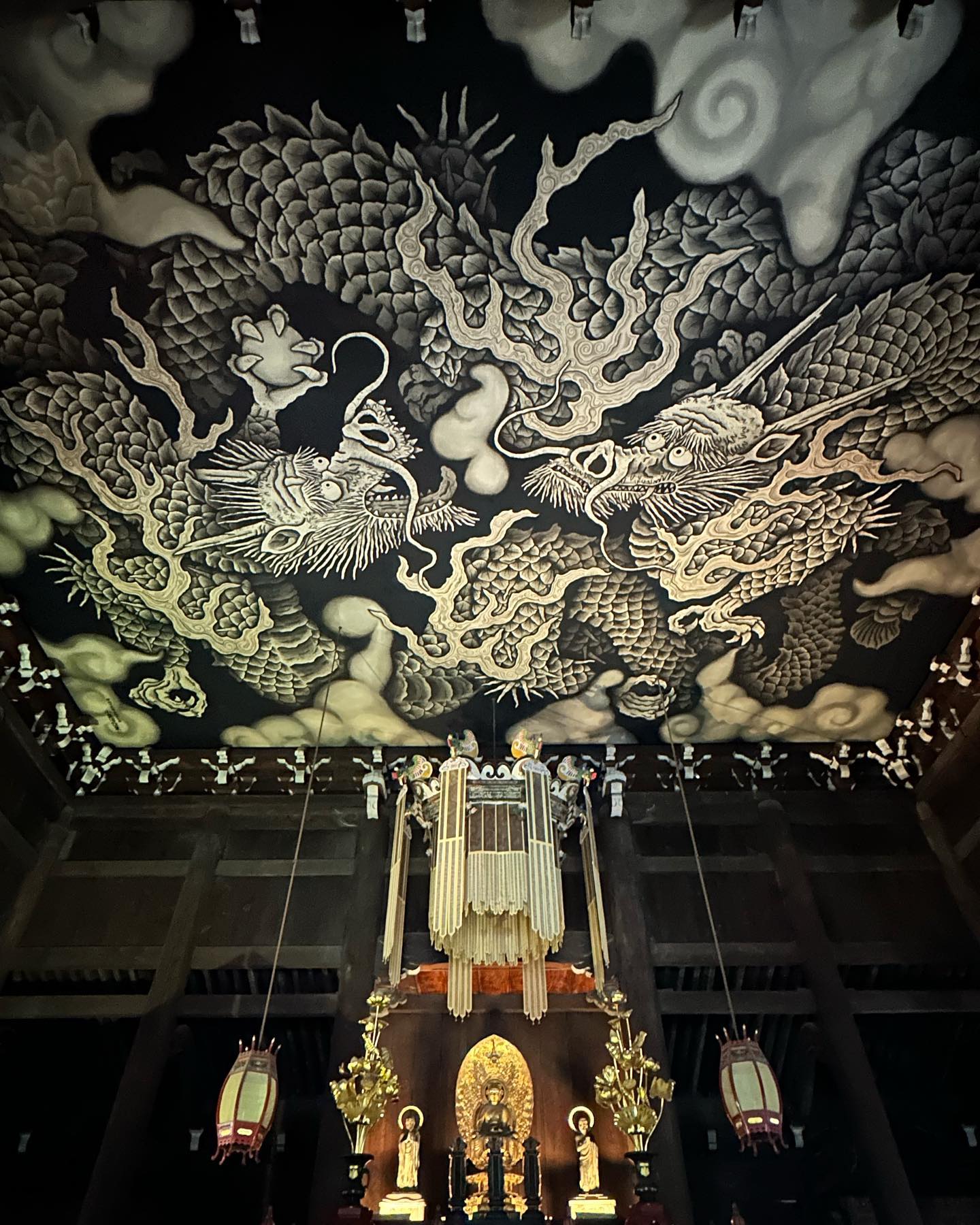 俵å±å®éã®ã颚ç¥é·ç¥å³ããéè¿ã«ã¿ãããæ³å ã倩ãä»°ãã¯ããã€ãããã¯ãªãåéŸå³ããèžããããã¯2002幎ãåµå»º800幎ãèšå¿µããŠãå°æ³æ·³äœæ°ã«ããæããããšããã