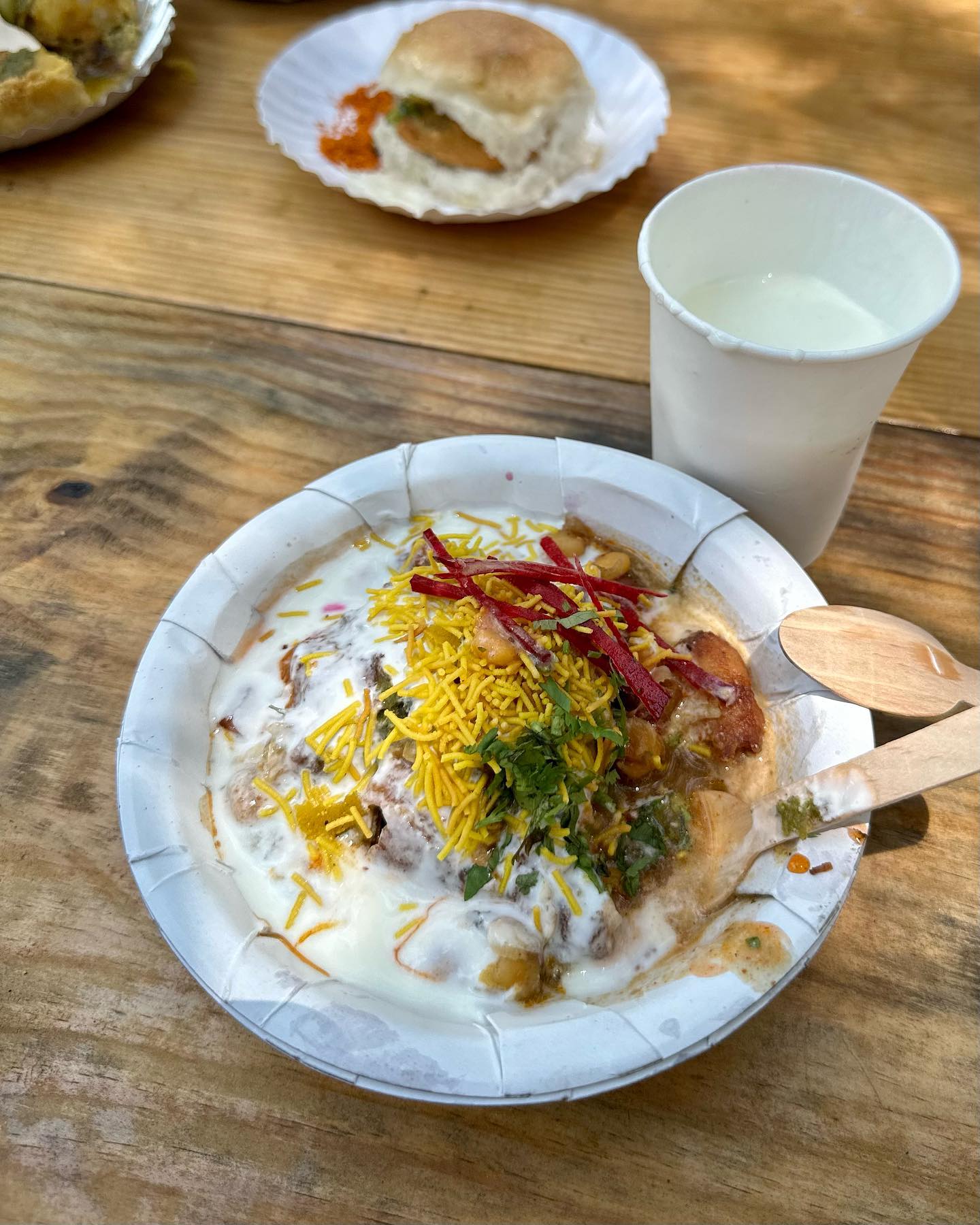 蒸し暑い午、揚げたて怒涛トッピングの暑苦しいジャンクフードを、ラッシーと共に食す旨し。
