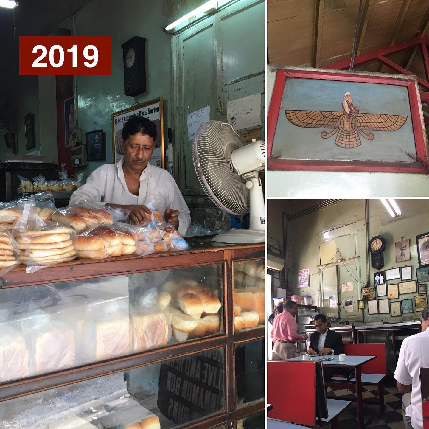 蒸し暑い店内で、時間の渦に吸い込まれるような気持ちで、チャイを飲む。ゾロアスター教のシンボル。ヘリテージサイトに指定された証明。名物アップルパイの看板。古びた食パンスライサー……。初めて訪れた15年前から、なにも変わらない。新しく貼られている「FREE SAUNA & STEAM」の文字に苦笑しつつ……涙が出てくる。