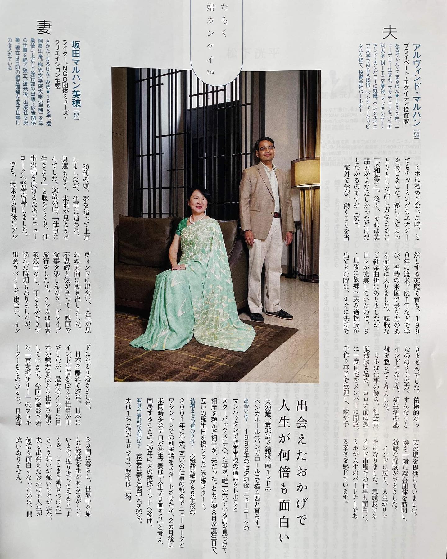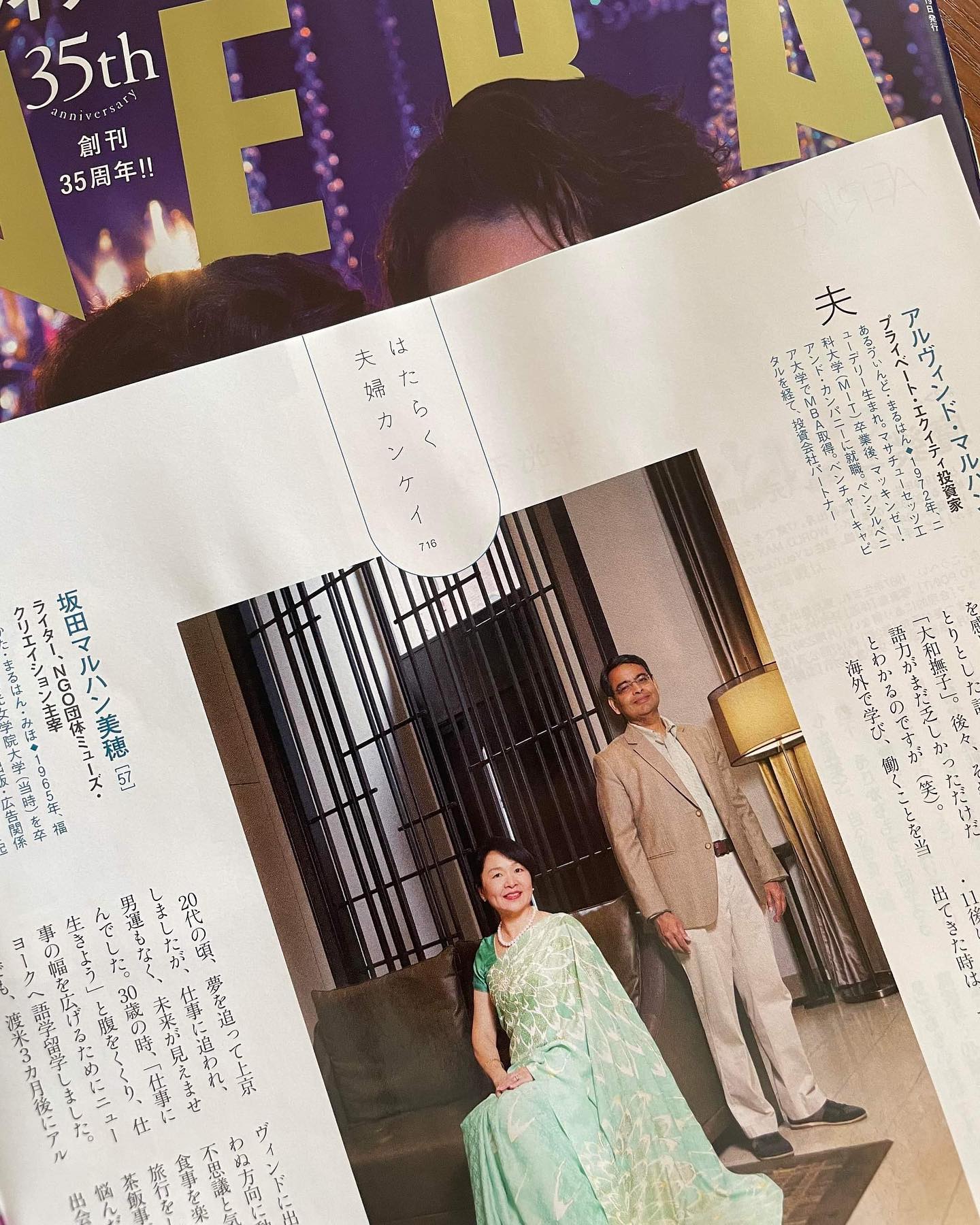 🇮🇳We are featured in the weekly magazine “AERA”, published by Asahi Shimbun in Japan. The theme is ‘Working married couple’. Journalist Mariko interviewed us when we visited Tokyo in April. She used to live in Bangalore as an expatriate wife. She was also a member of Muse Creation.