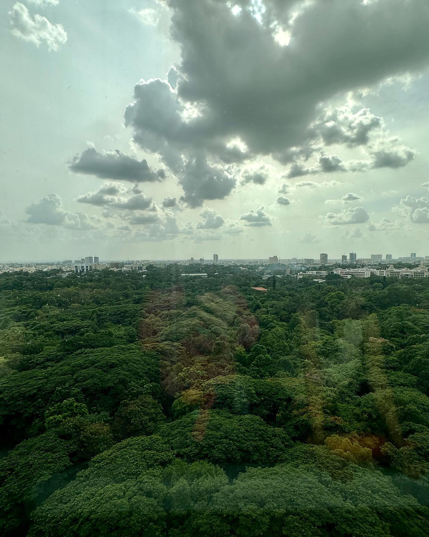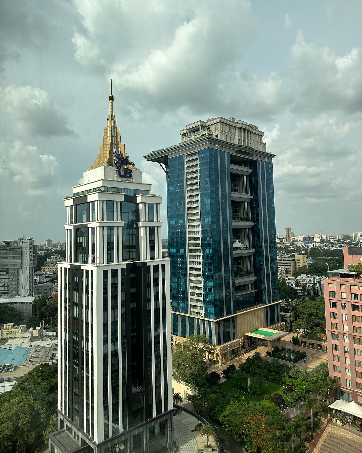 バンガロール市街中心部、UBシティに隣接するJWマリオット。上階のスイートルームが会場だった。ドアを開けるや飛び込んできた緑の眺望に目が釘付け。昼間、このアングルからカボンパークを間近に見下ろすのは初めてのこと。