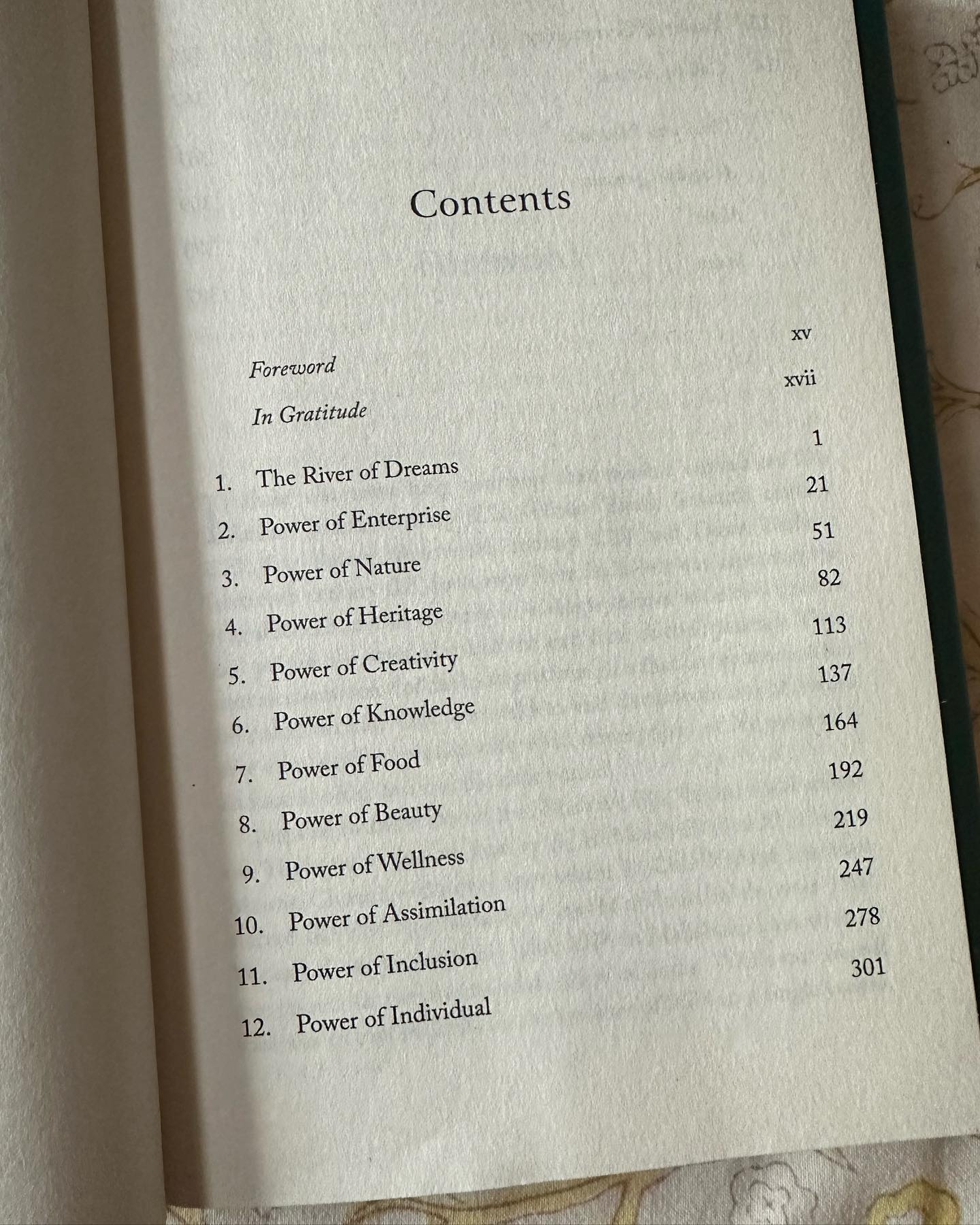 ◉大きく14の項目に分けられたこの本。自然の力、伝統の力、食の力、知識の力……と、分けられた中に、具体的な経験談とデータが整理されている。たとえば、『Power of Creativity(創造力の力)』の項では、人間が本来持つ「創造力という超能力」が、新時代のテクノロジーとAlを駆使し、いかにして創造的経済を築くのに役立つかについて言及するなど。