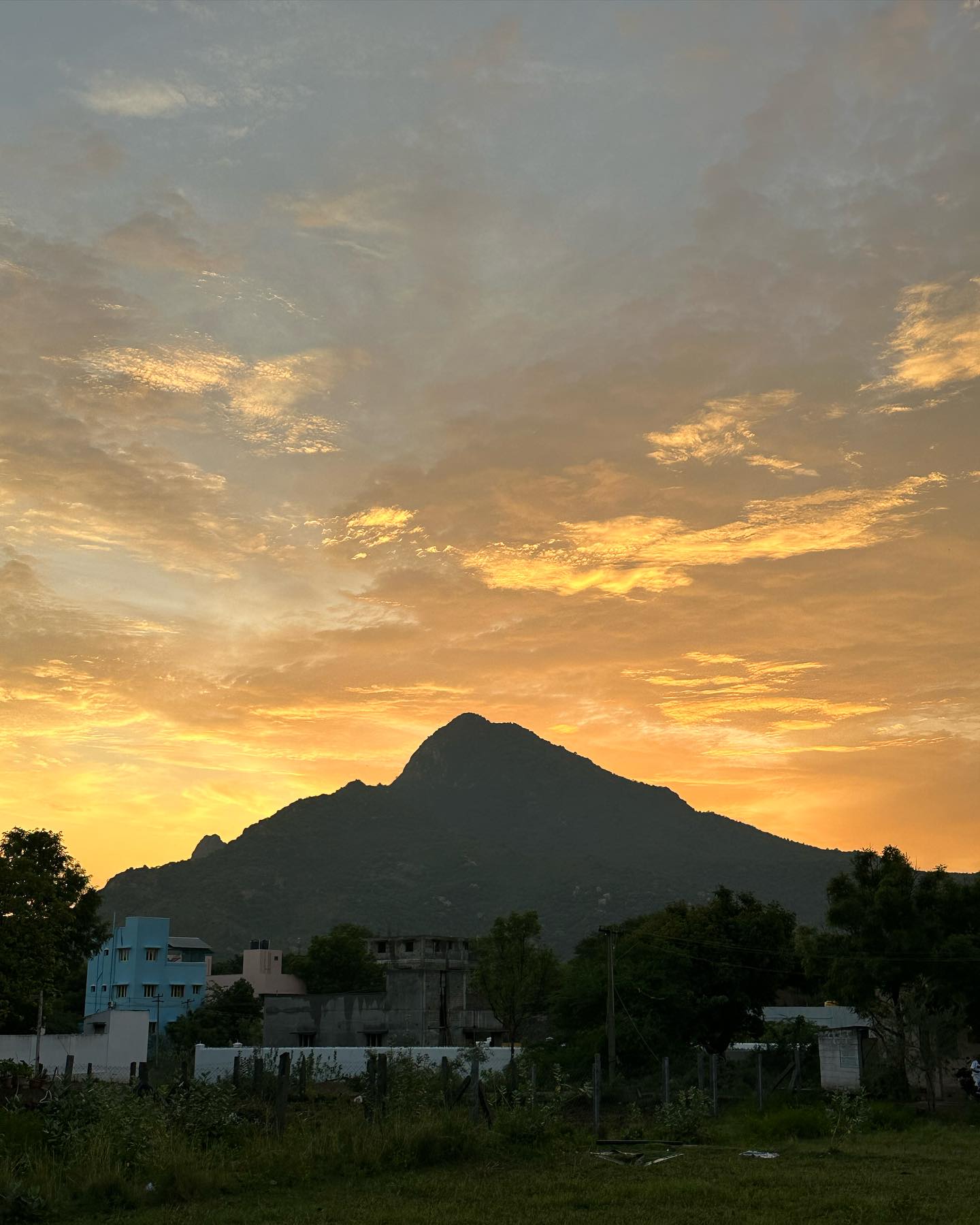 そして今朝。アルナーチャラ山の背後から、朝日が登るころに、ホテルを出発。