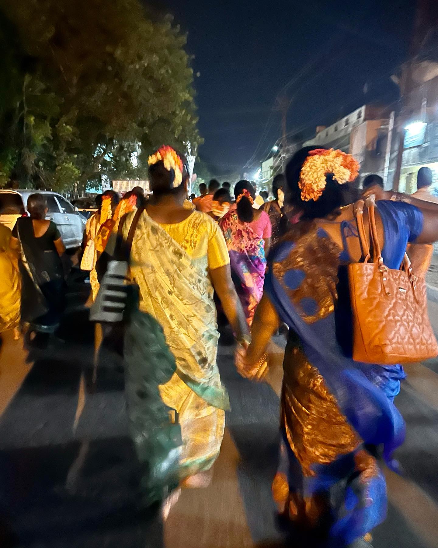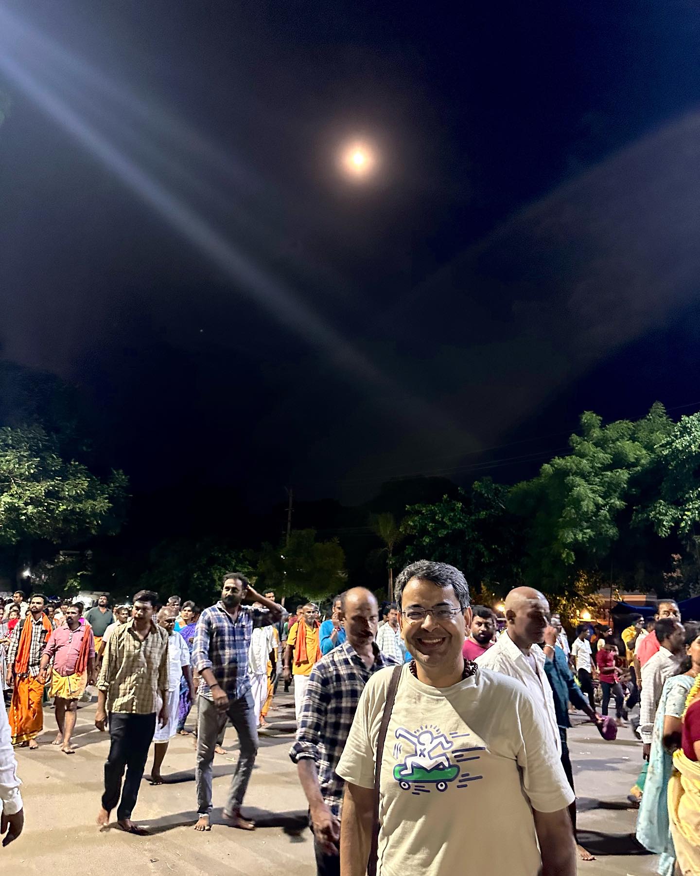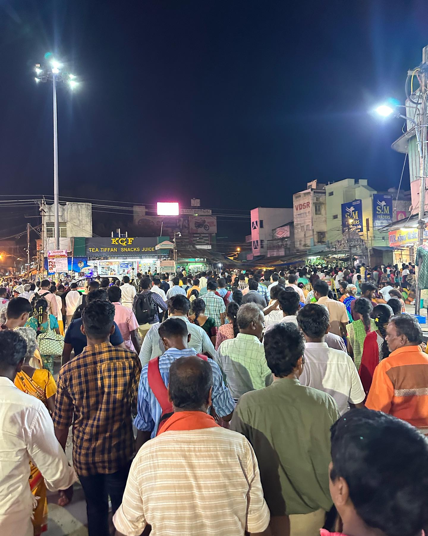 🌕喧騒。雑踏。Om Namah Shivaya という、シヴァ神を讃えるマントラが響き渡る中、ひたすらに歩く。沿道は縁日のような賑わいで、我々は曼荼羅の周囲を歩く人生ゲームの駒のごとく。やがて日が沈み、夜の帳(とばり)が下りる。