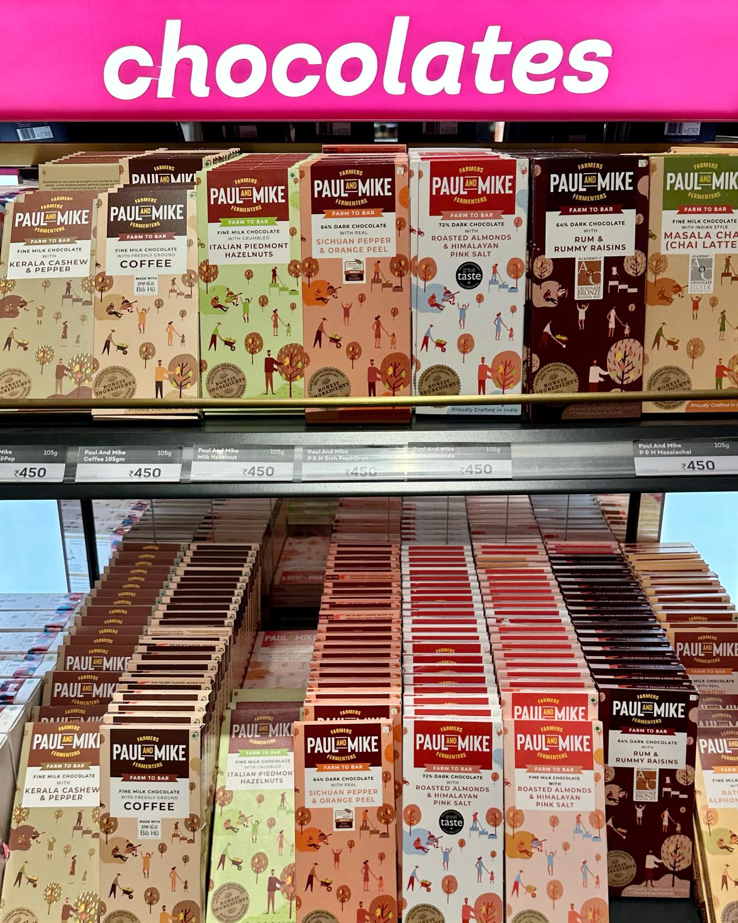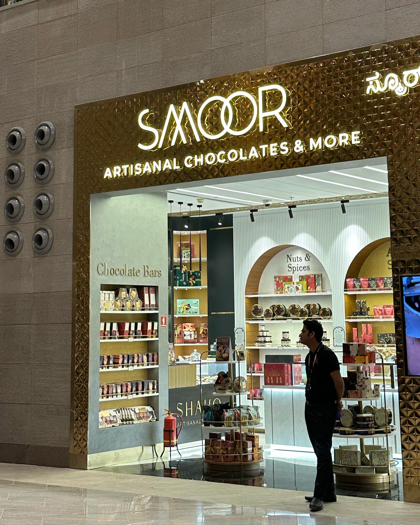 さて、出国手続きを終えた先、まずは免税店のゲートに出迎えられる。ここにはグローバル・ブランドはもちろんのこと、インド(特に南インド)ブランドの嗜好品が見られたのはうれしかった。これまで何度も紹介してきたバンガロール拠点のシングルモルト・ウイスキー「Amrut」や南インド産のARAKU COFFEE、やはり南インド産のカカオを使ったチョコレートなど。