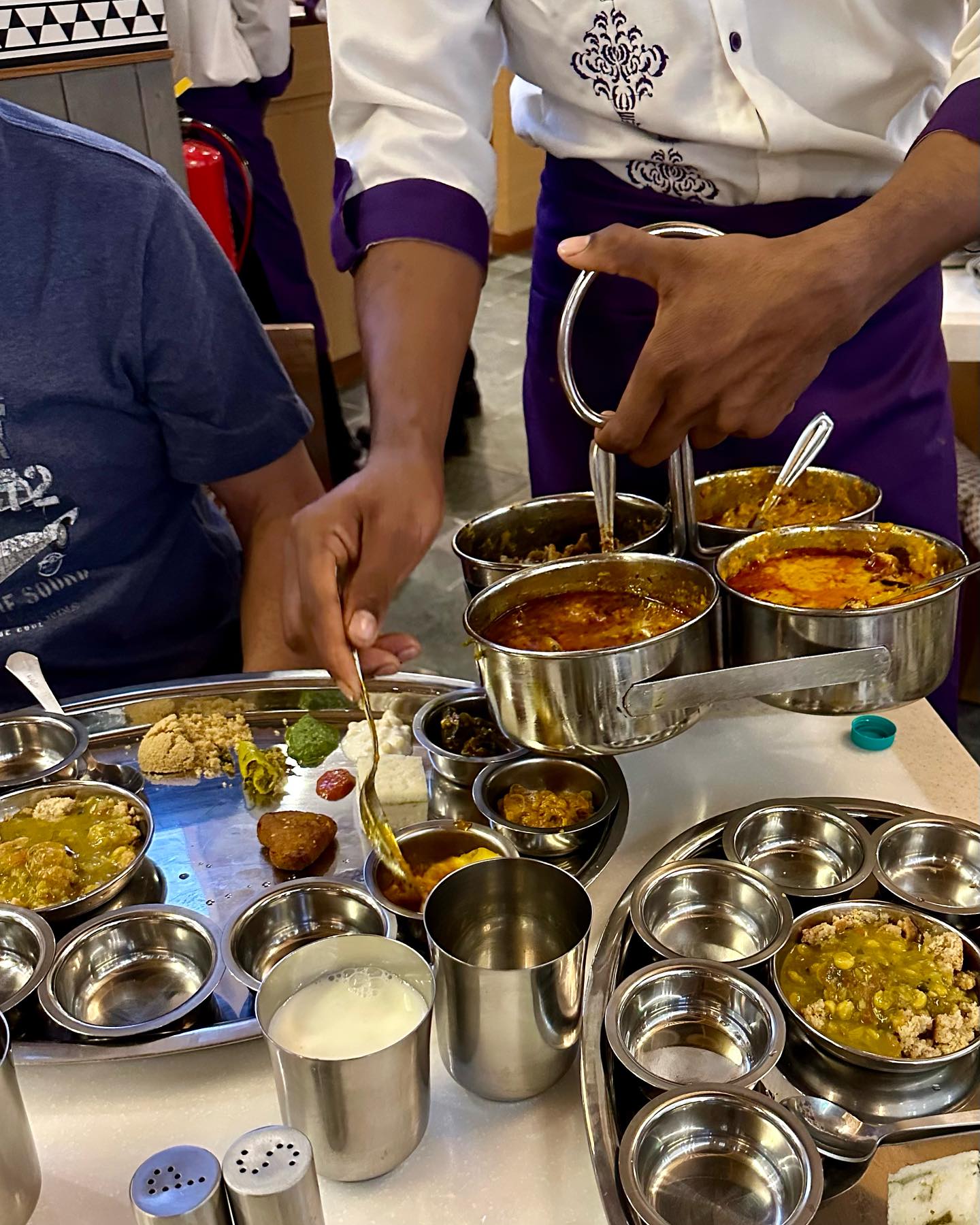 行きたかった店がオープンしていなかったので、グジャラート地方のターリー(定食)専門店を選んだが、これは二人に好評だった。おかわりし放題のランチをがっつり食べたり、店舗やスーパーマーケットを巡ったり、コーヒーを飲んだりしているうちにも3時間以上を過ごしていた。