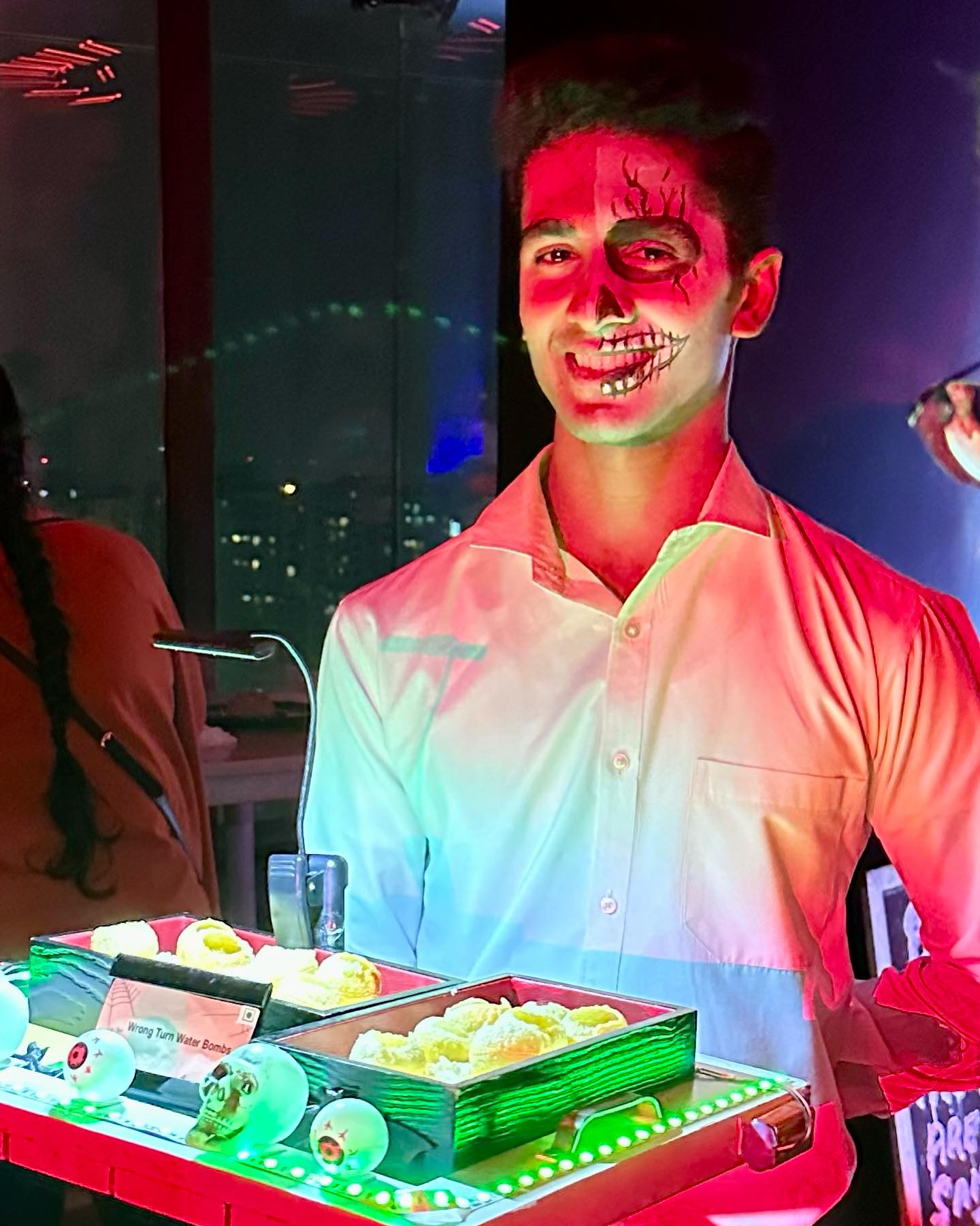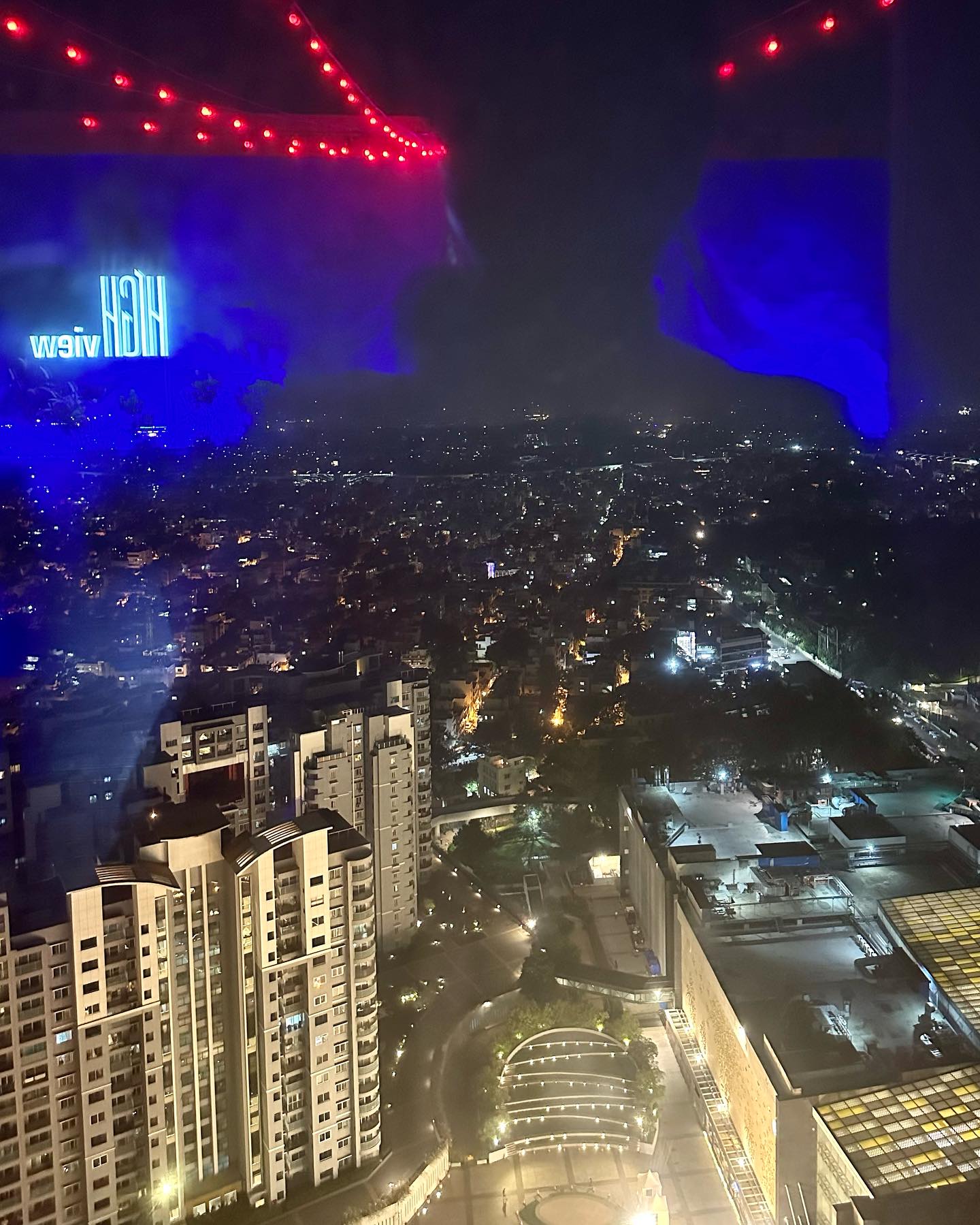 友人からパーティに招かれていたものの、妹たちは到着直後で疲れているだろうから家で過ごそうと考えていた。しかし二人とも元気だし、出席したいとのことなので、友人に急遽連絡して「ドタキャン」ならぬ「ドタ参」することに。会場はバンガロールで最も高層のビルディングの最上階、High Ultra Lounge。眺めのよい場所だ。