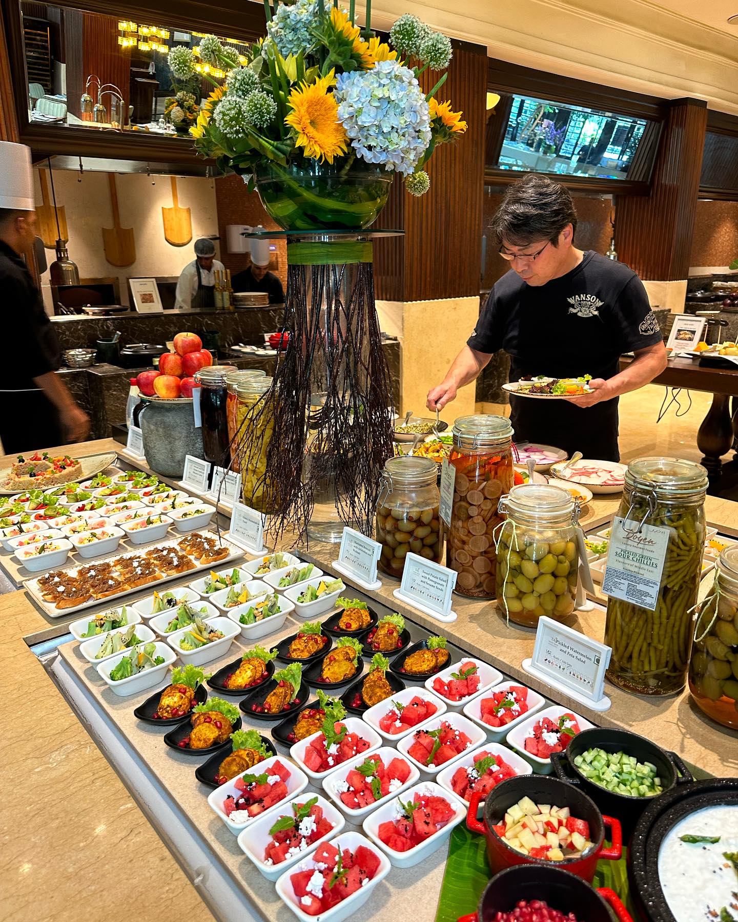 そして久しぶりのランチブッフェ。パンデミック中の気分転換にと、過去3年間に2度ほど滞在したが、ランチブッフェは久しぶりのこと。その時代その時代でシェフが変わり料理の構成も変わってきたが、今回は最もわたしの口に合うメニューだった。妹夫婦も楽しんでいた様子。特に果物や野菜、小麦粉(パン類)の旨味、乳製品の滋味などに、感銘を受けていたようだ。