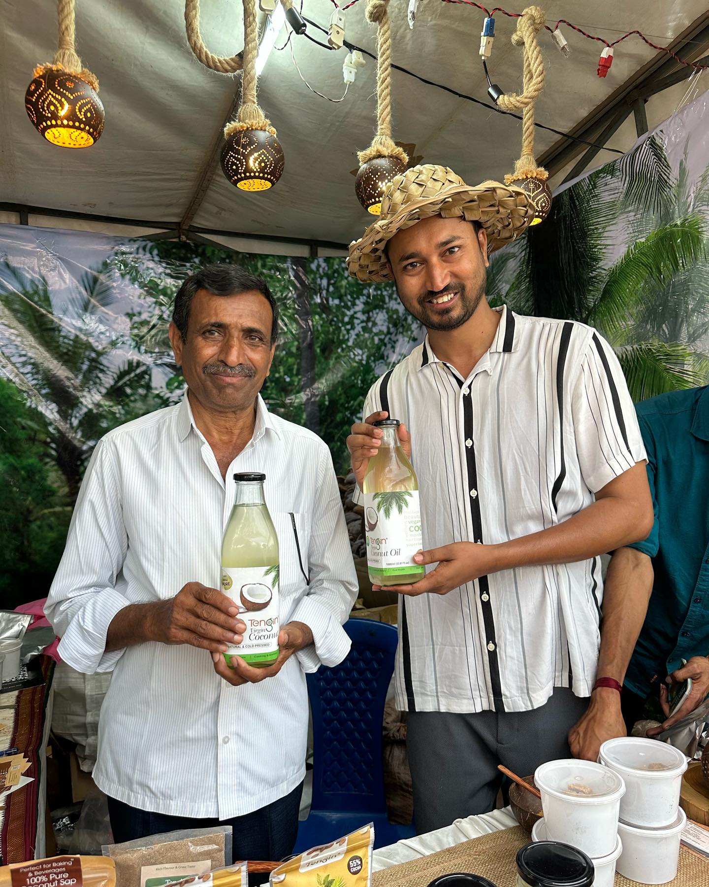 もう、何度となく紹介してきたお気に入りのココナッツ店。企業勤務していた彼は、数年前に家業を継いでココナッツオイルをはじめとする各種ココナッツ製品(試行錯誤で開発)を販売している。このココナッツオイルは、化粧落としからボディマッサージ、ヘッドマッサージ……もちろん料理にと、ありとあらゆる場面で役に立つ。今回、初めて彼のお父様にお会いした。
