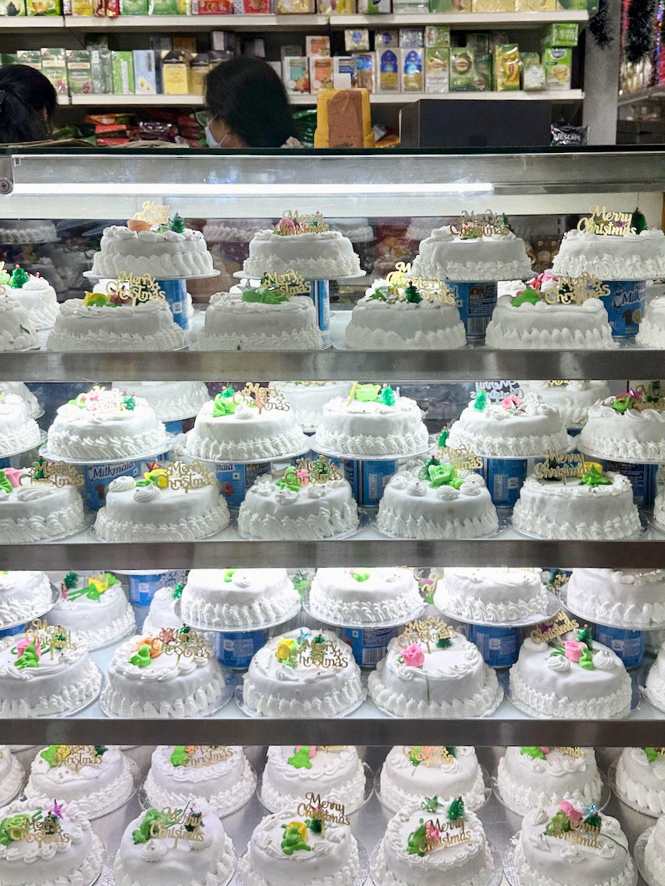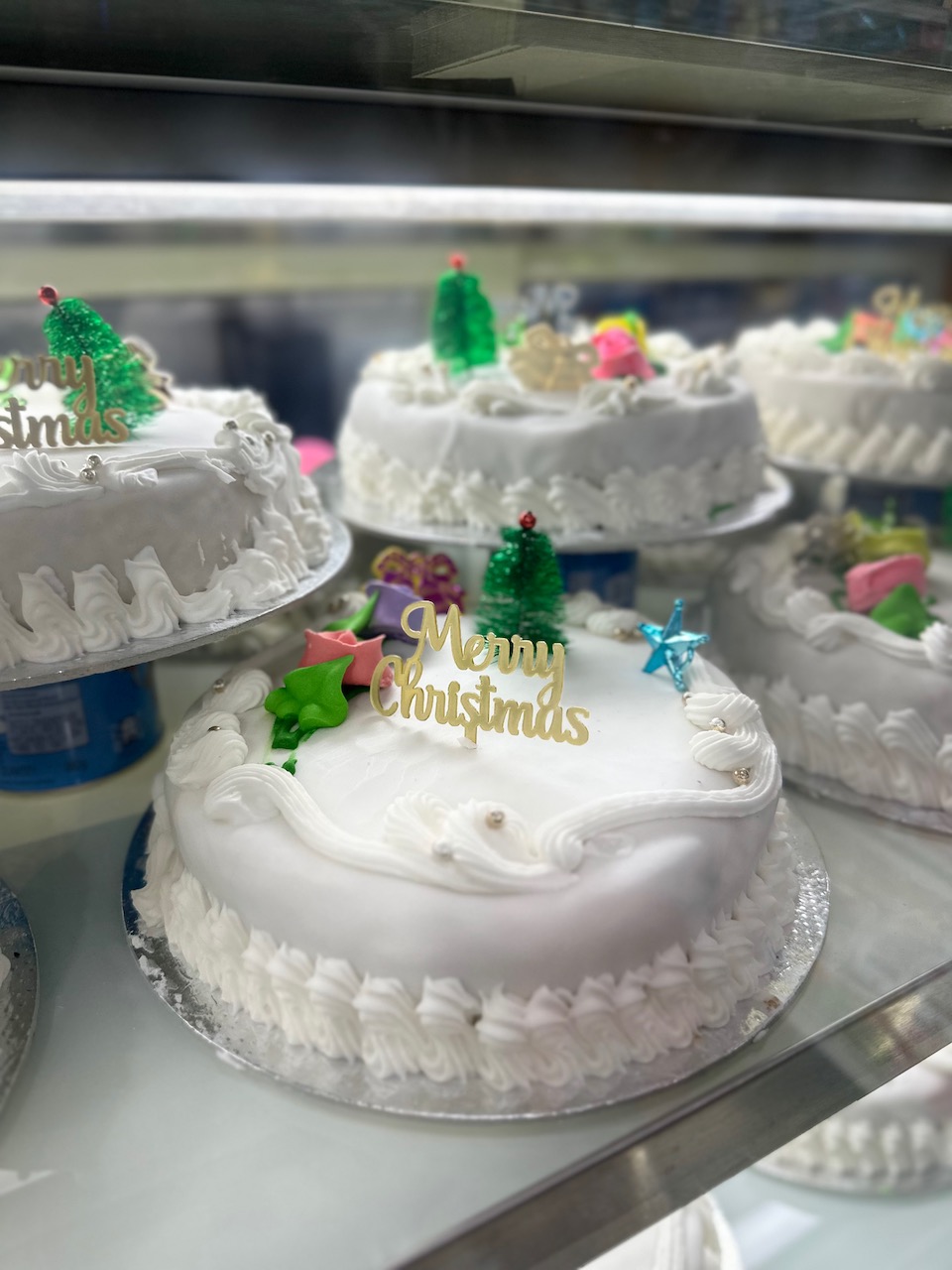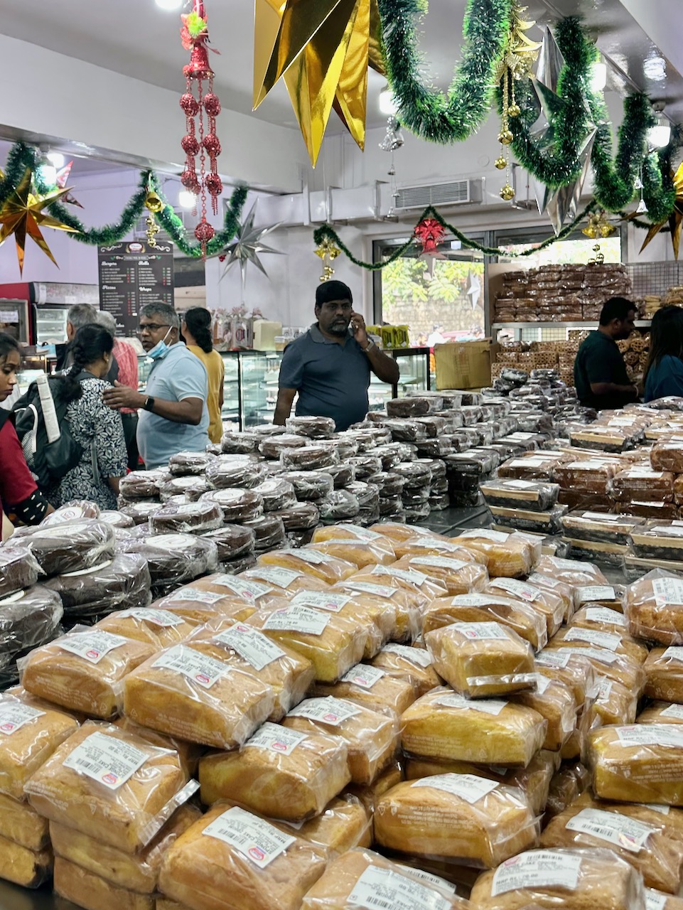◉この界隈のクリスチャンにとって、クリスマスケーキといえば、この茶色いプラムケーキが定番なのだ。ドライフルーツやナッツ類が入ったもので、ラム酒の風味が利いているものもある。日持ちするので早めに購入する人も多い。
