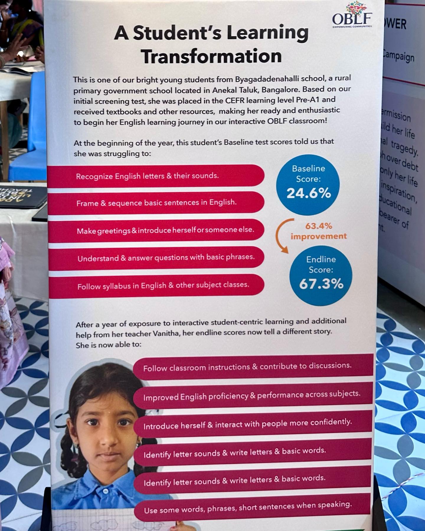 そこから、10億人の人々が読み書きできるように「One Billion Literates」というビジョンにて、公立学校の既存の物理的インフラを活用し、英語とテクノロジー教育を公立学校に提供することからOBLFの活動はスタートしました。