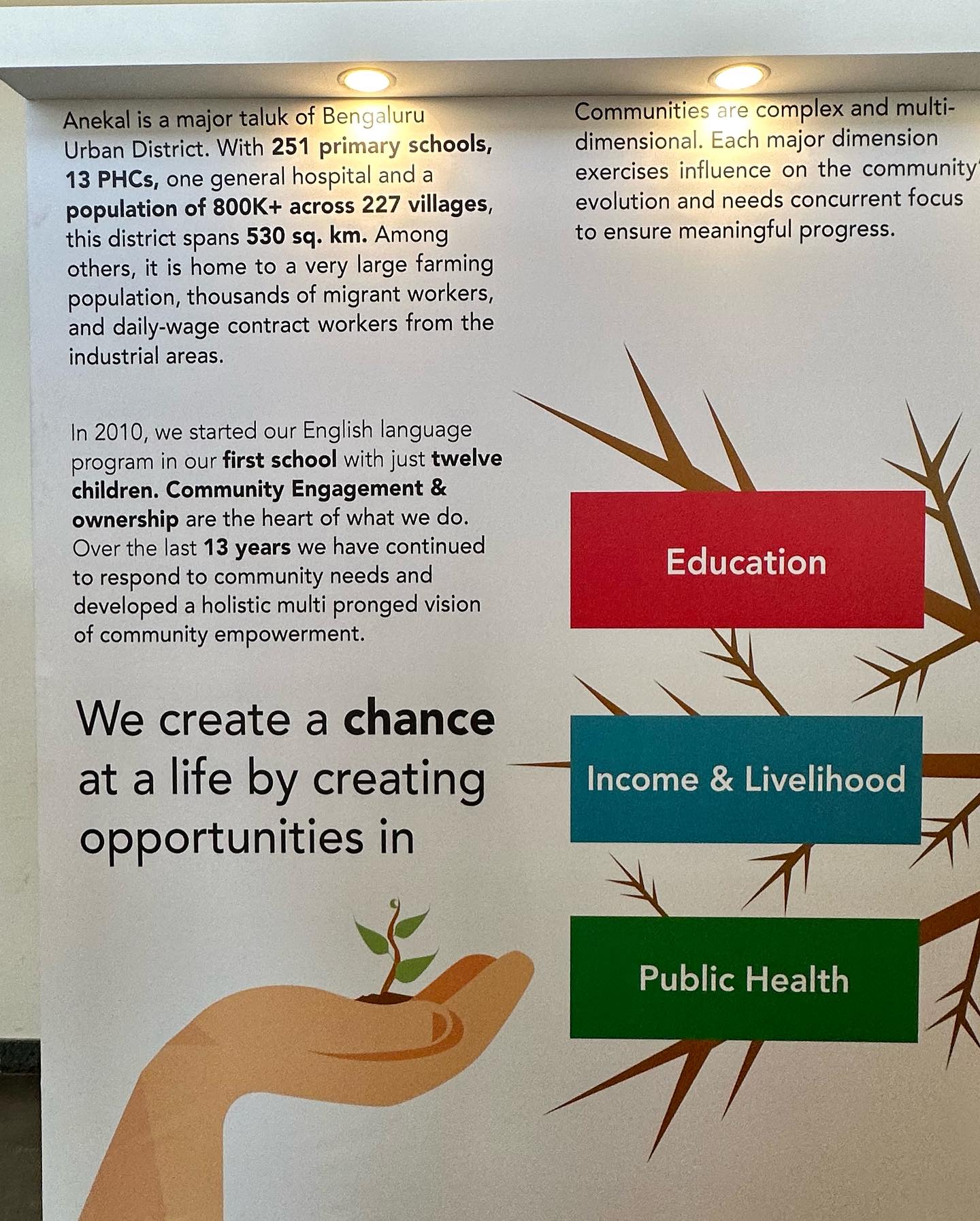 Anekal Talukという地域に住む主に女性に生計の機会を創出。そのために、地元の農村部の女性をコミュニティ教師として政府の小学校で教えたり、最前線の保健ワーカーとして働くことができるよう、能力を育成。