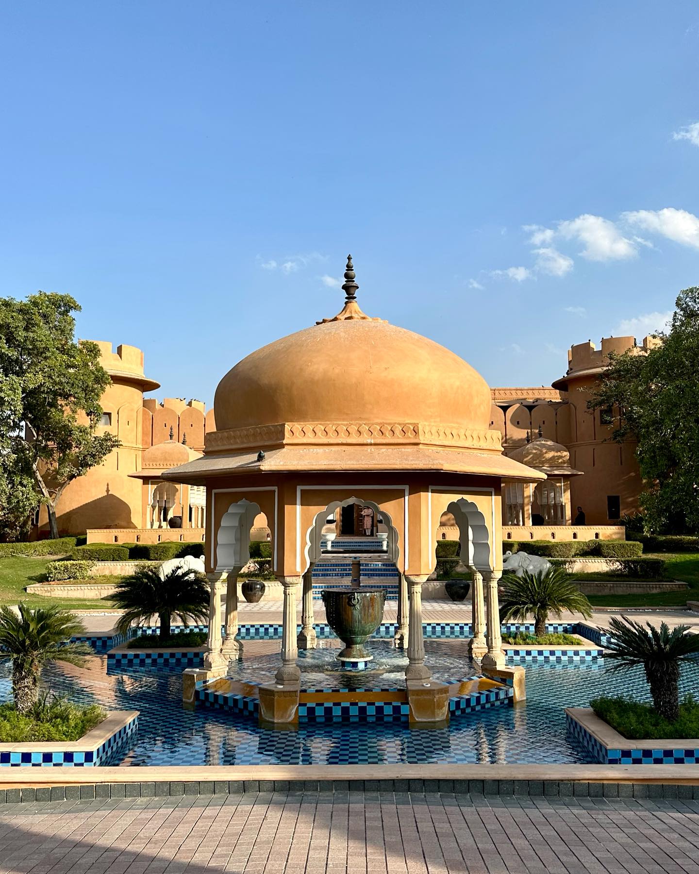 わずか3泊につき、今回も自由行動はほとんどない。ゆえに、少しでも滞在を豊かにできればと、中心部から離れたリゾートホテルThe Oberoi Rajvilasを宿に選んだ。