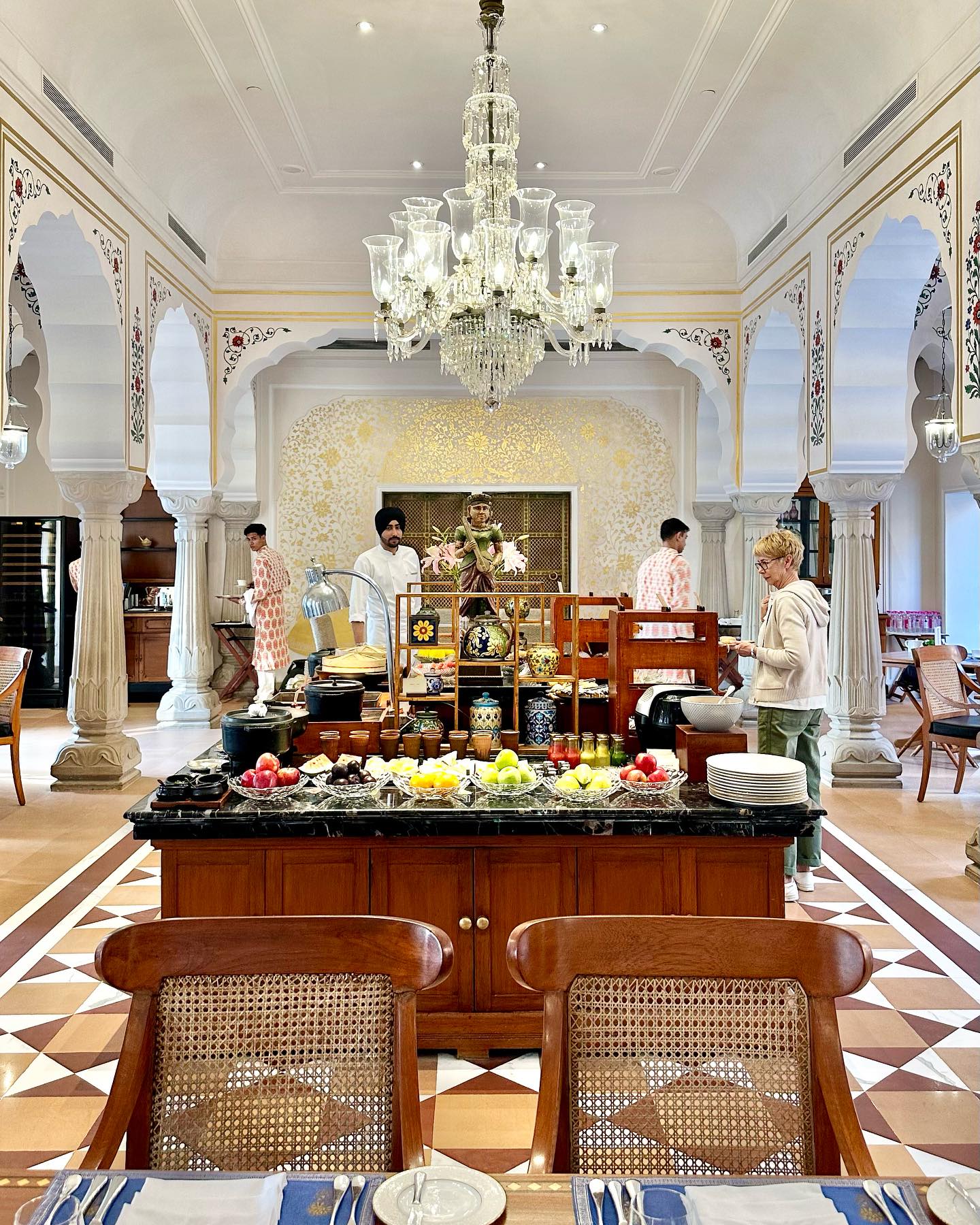 昨日は、ホテルの敷地内の散歩から1日を始めた。冷んやりとした空気も心地よく、孔雀らはフレンドリーに美しく優雅で、まさに楽園だ。リゾートの中心には、300年近い歴史を持つ小さなシヴァ寺院がたたずむ。散歩の終わりに手を合わせ、朝食を取るべくダイニングルームへ。