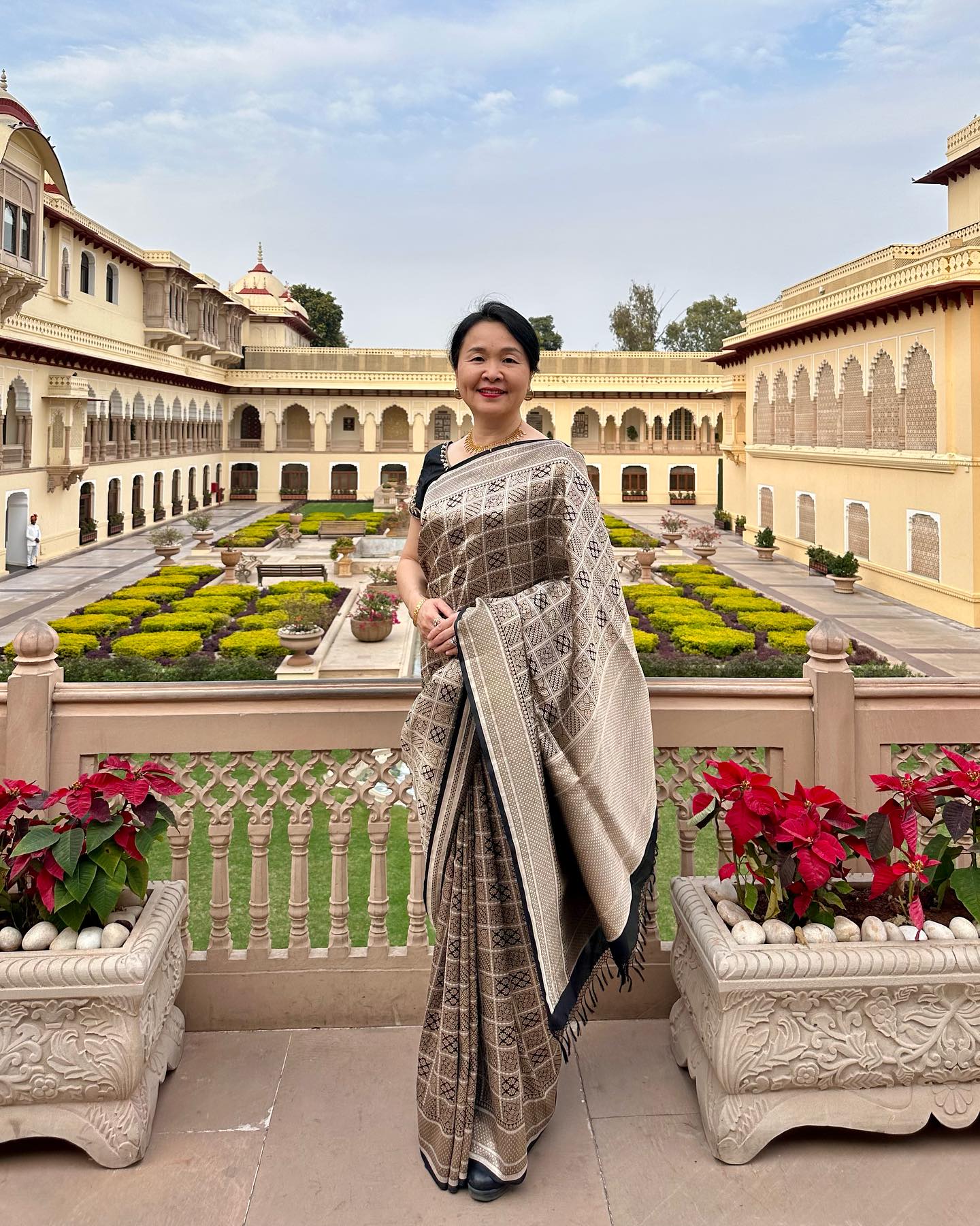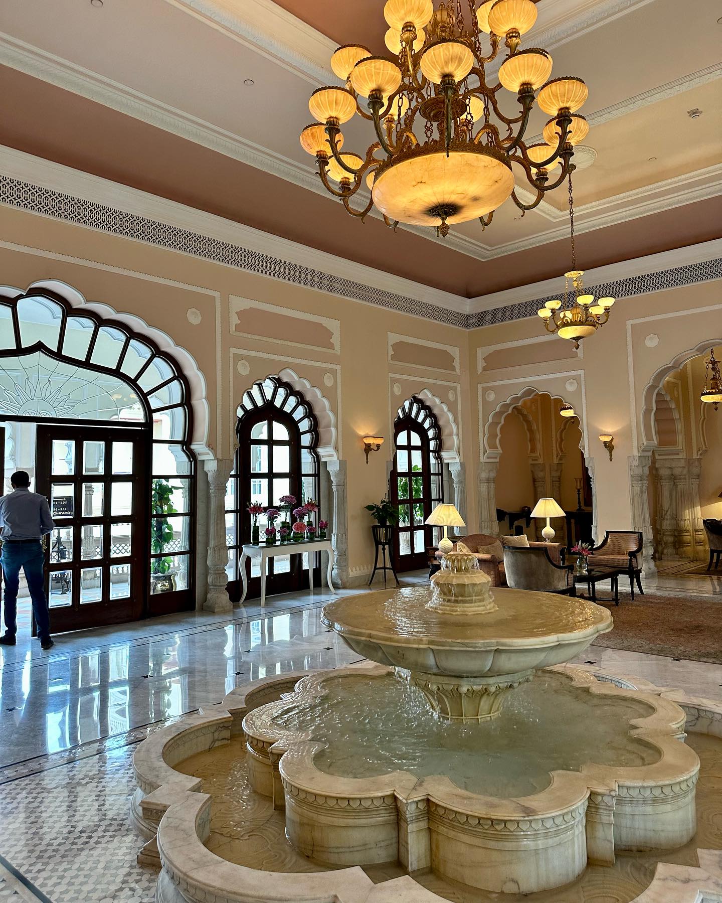慌ただしくもジャイプル文学祭の片鱗を堪能。その後は、夕刻からのパーティに参加すべく、着替えねばならない。我々夫婦は中心部から少し離れた場所にあるThe Oberoi Rajvilas に滞在していたことから、他のYPOメンバーらが滞在している中心部のホテル、Taj Rambagh Palaceで着替えさせてもらうことにした。