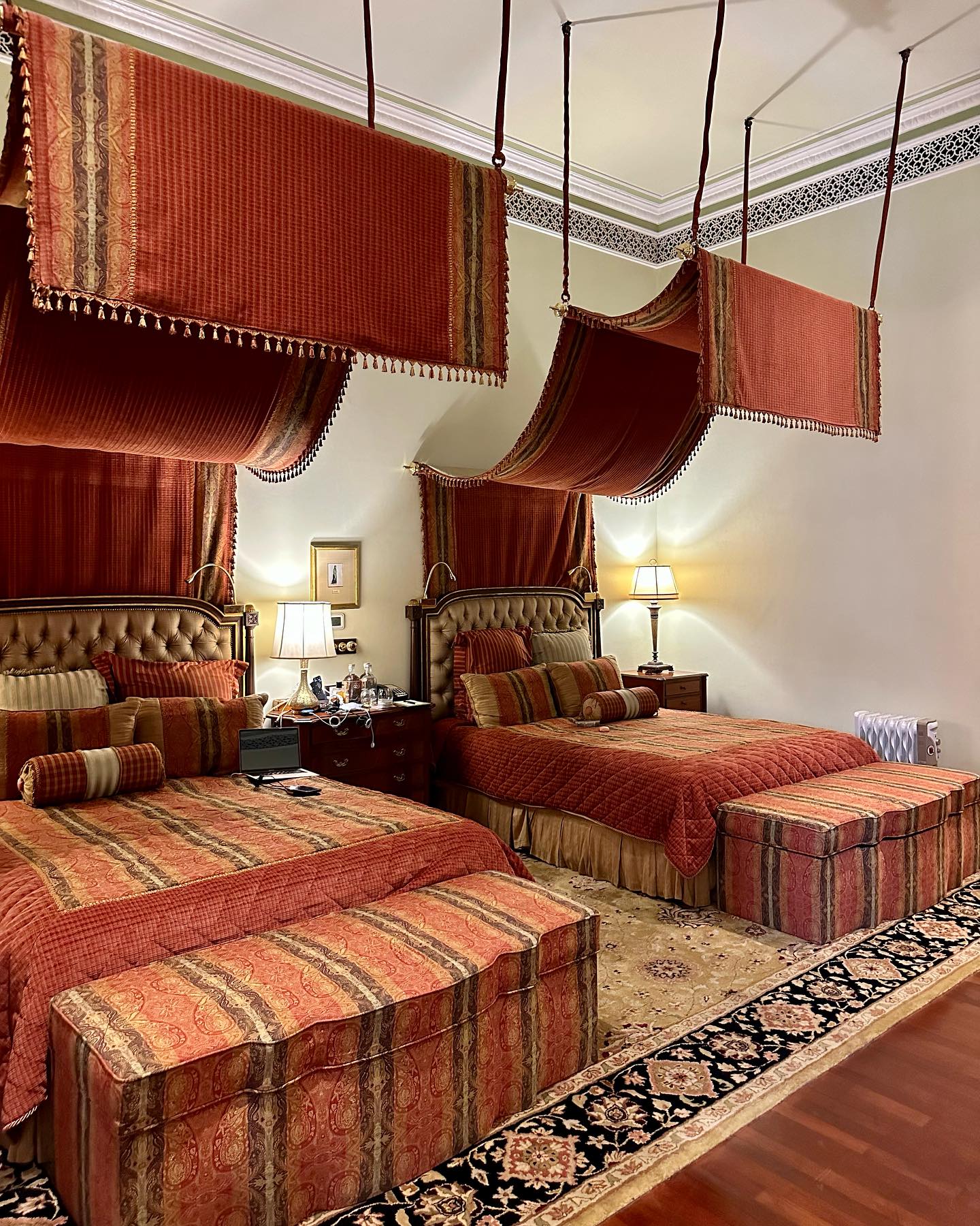 重厚なドアを開ければ、なんともはや豪奢な空間。かつて王妃が使っていたという家具調度品もそのままに、まるでミュージアムのような趣だ。