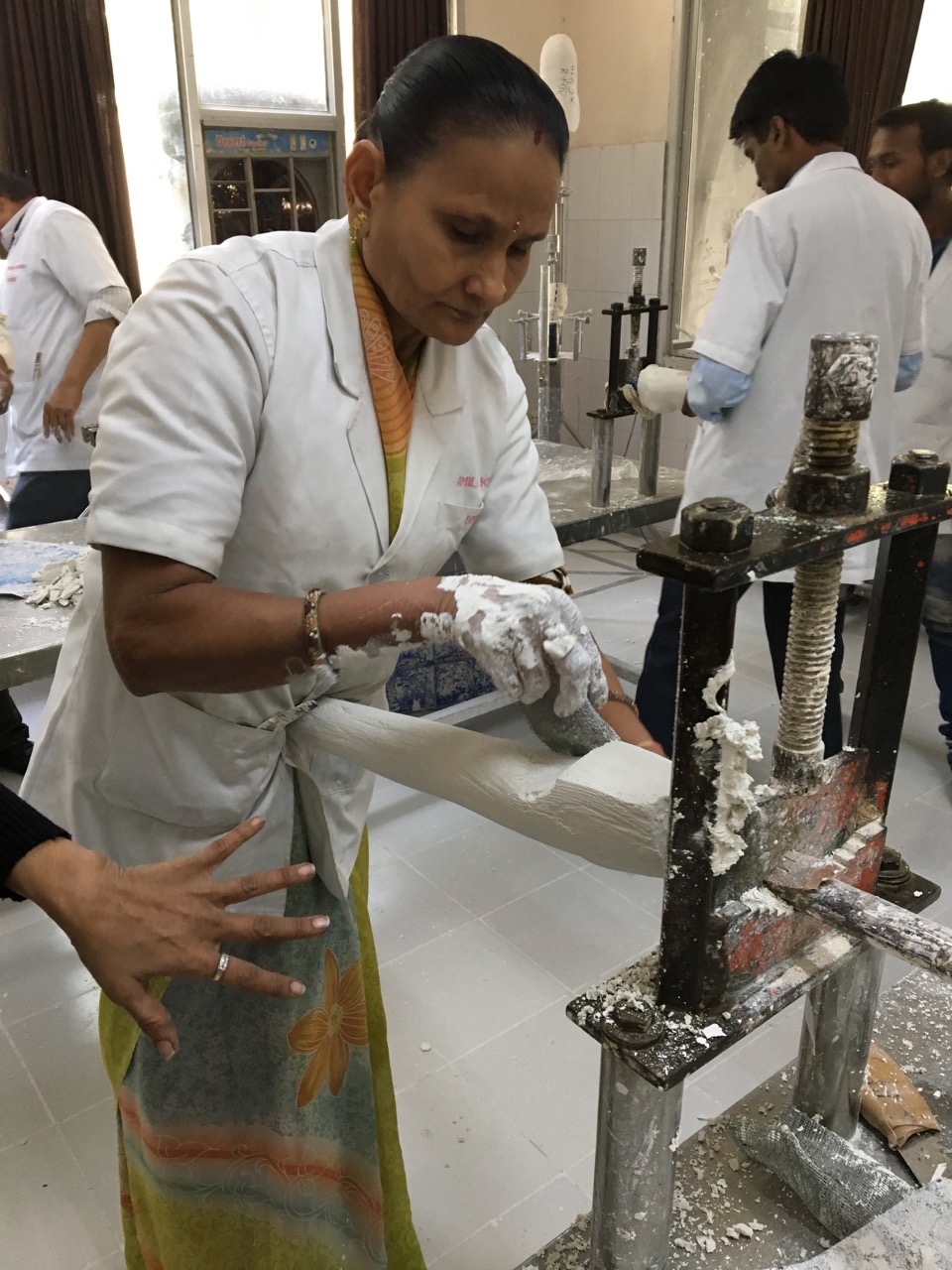 案内してくれたのは、YPOのジャイプール支部のメンバーで、ドクターのアニタ。ジャイプル市街にあるJaipur Footは、1975年、D.R.メータ氏によって創設された「義足作り」のNGOで、世界最大規模を誇る。