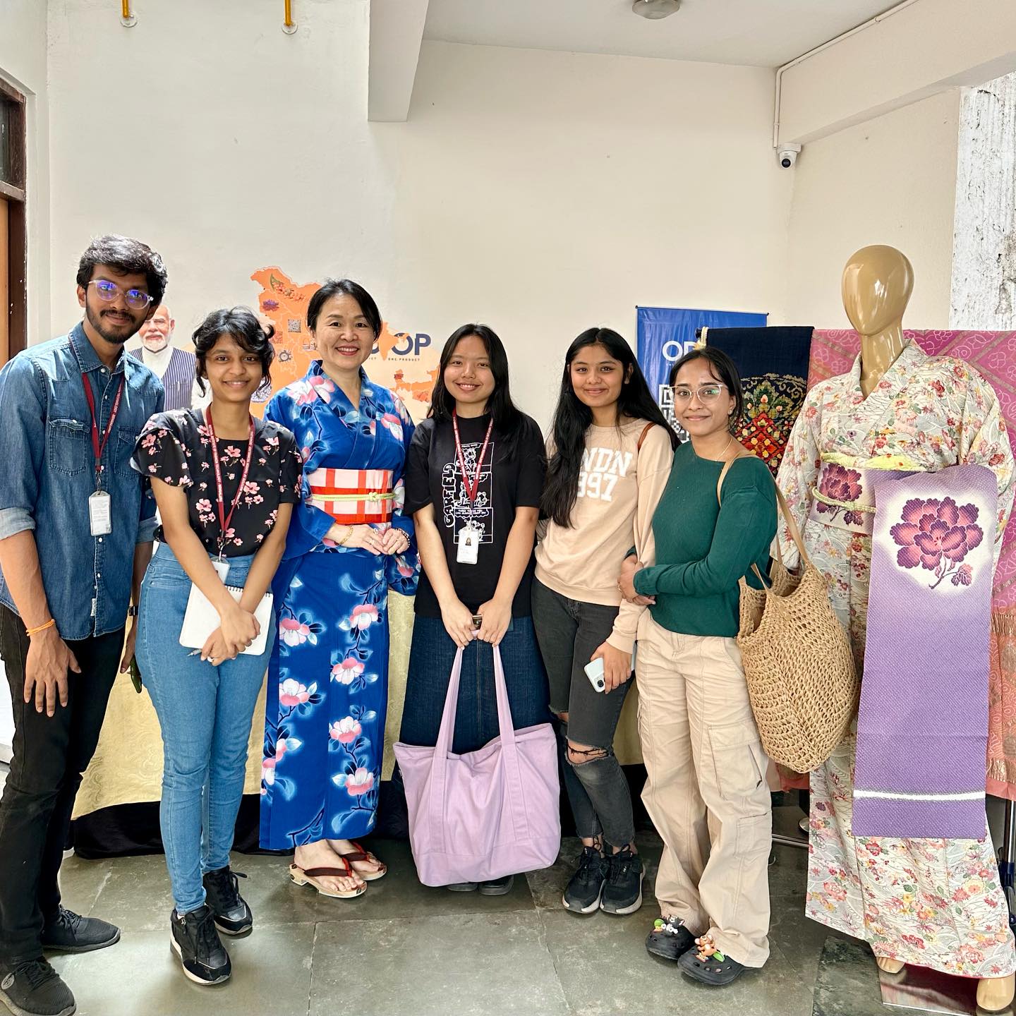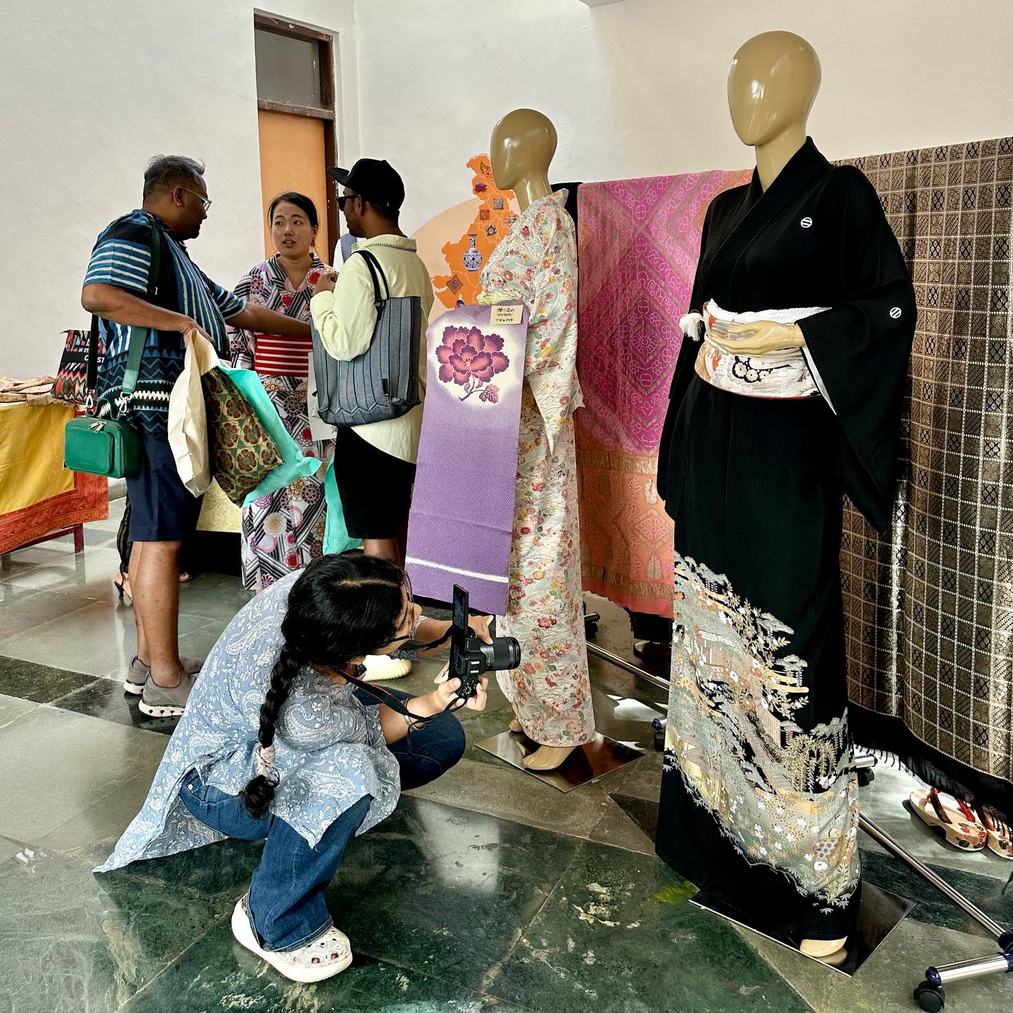 ïŒæ¥ç®ã¯ããã¡ãã·ã§ã³ãåŠã¶NIFTã®åŠçãã¡ã次ã ã«æ¥èšªãè峿ޥã ã«çç©ãçºãã質åãããŠããã圌ãã®æ¯èŠªäžä»£ãããã§ã«ããµãªãŒé¢ãããé²ãã§ããããšããããã€ã³ãã®äŒçµ±çãªããã¹ã¿ã€ã«ã«è§Šãåãæ©äŒãå°ãªãããã ãèãã°åŠæ ¡ã§ãäŒçµ±çãªããã¹ã¿ã€ã«ã®ããšãç©æ¥µçã«å匷ããŠãããšãããåŠçã°ã«ãŒãã«ãã€ã³ãèµ·æºã®ããã¹ã¿ã€ã«ãæ¥æ¬ã®è¡£é¡ã«åãŒãã圱é¿ã«ã€ããŠãªã©ãçç©ãèŠããªããèªãããšãç¹°ãè¿ãã