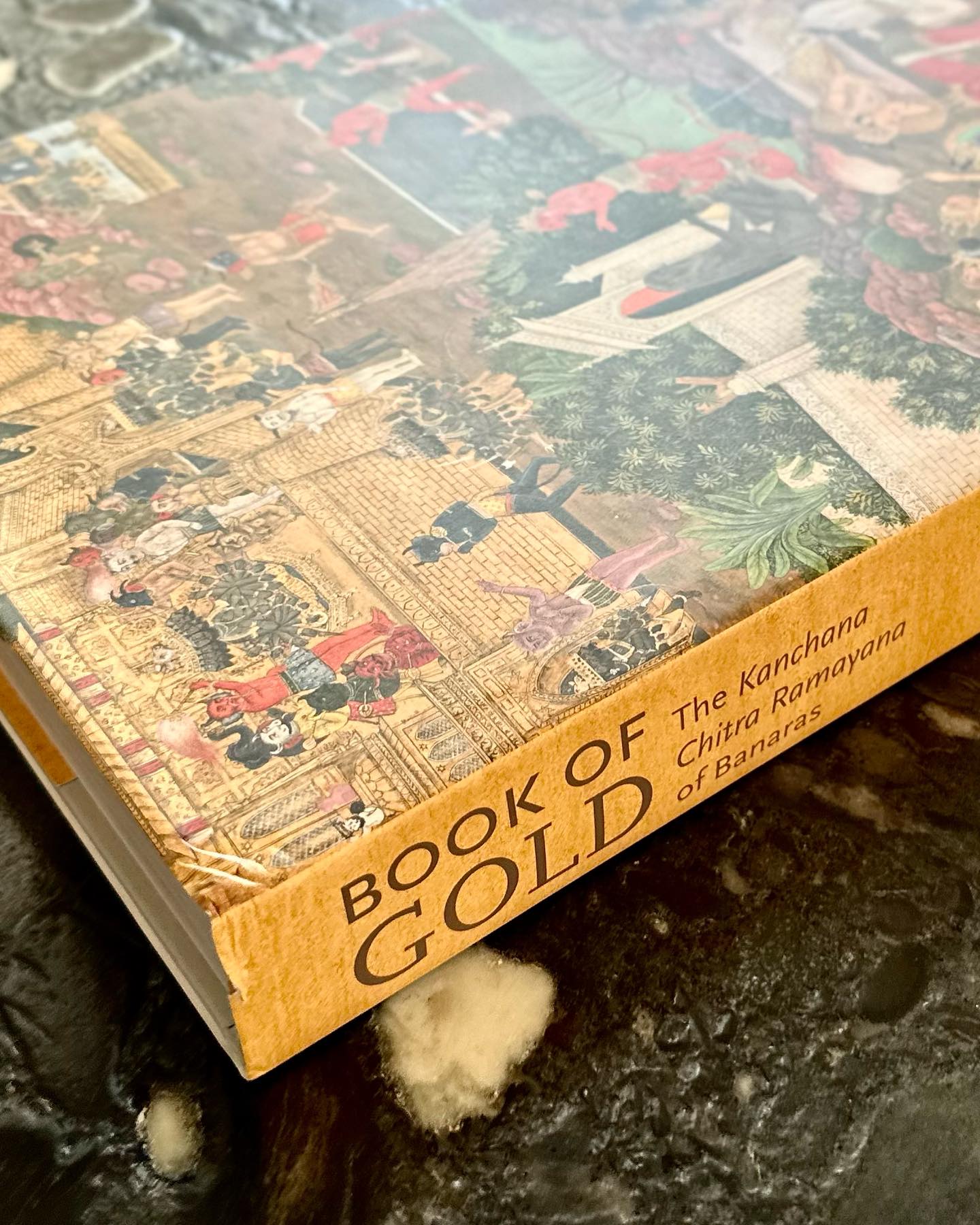 多くのインド人のDNAに染み込んでいるであろうこの壮大な物語は、今なお、口承、書籍、絵本、アニメーションなど、さまざまな媒体によって語り継がれ、現在に至る。この黄金の本は、そんな中でも最も高品質な媒体といえるであろう。バナーラス(ヴァーラーナシー)の王宮に納めるべく製作されたというこの本。